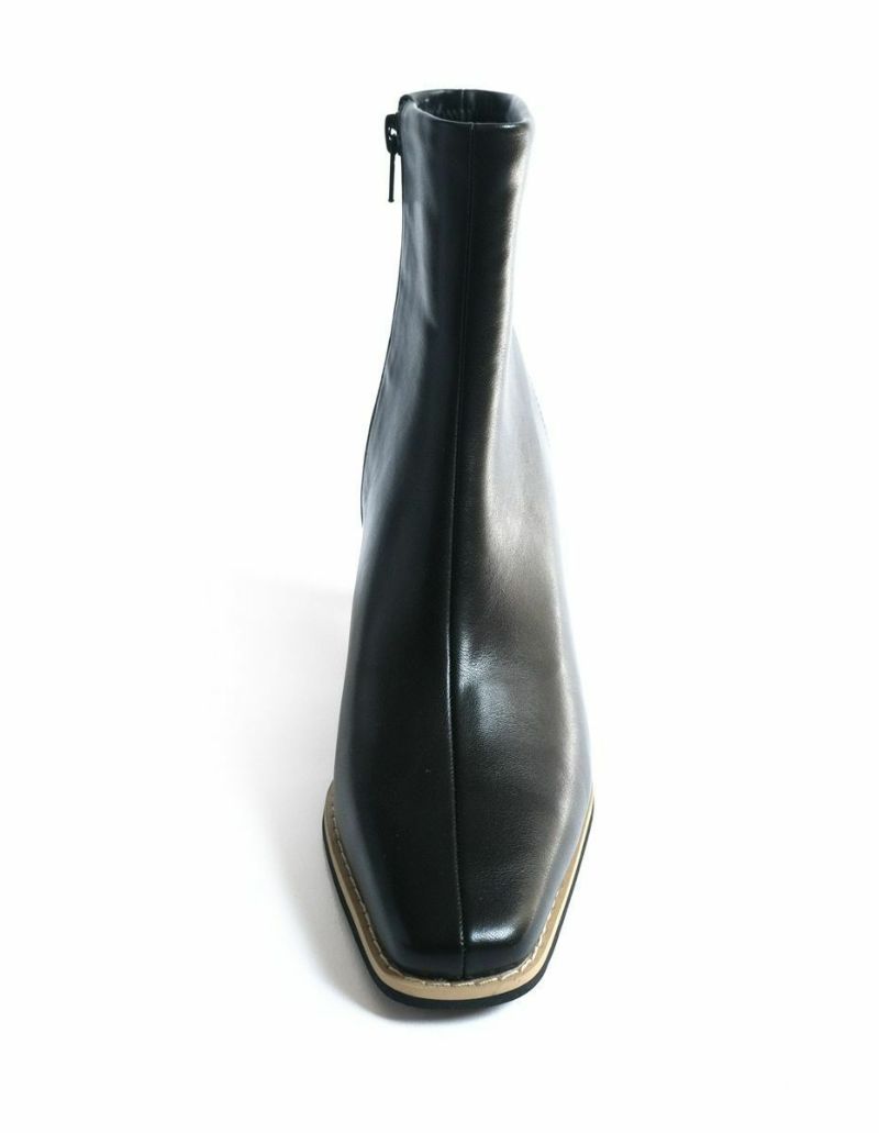 プレートヒールでほっそりとした足元を叶えるスクエアトゥブーツ