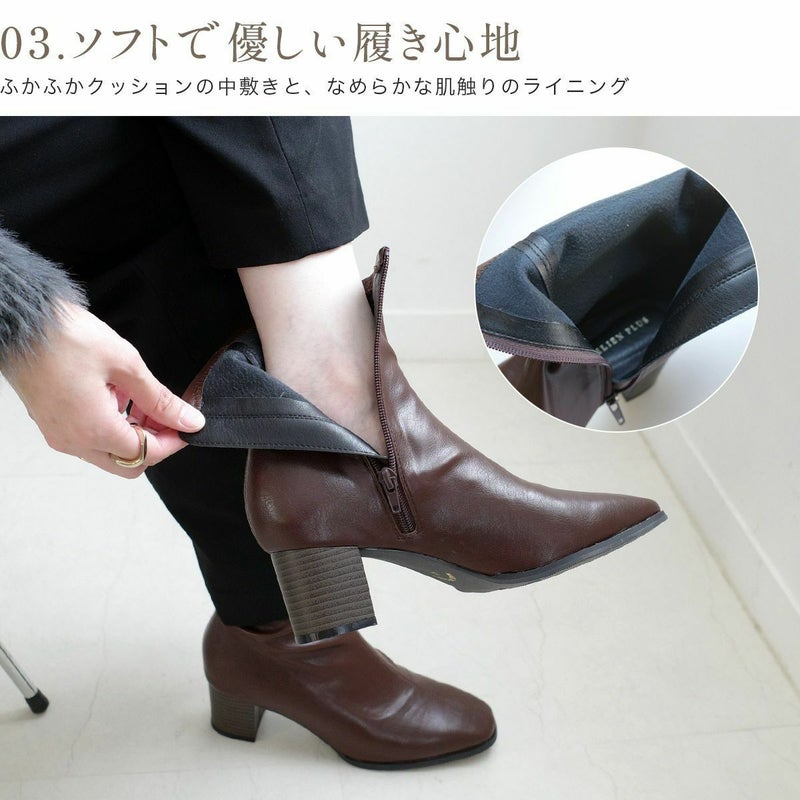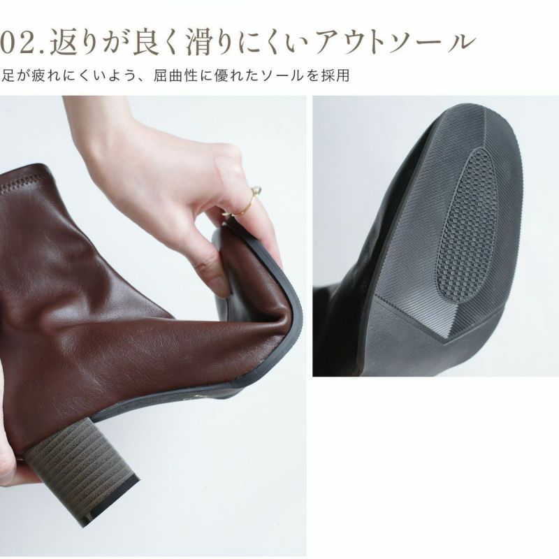 試行錯誤を繰り返し、柔らかく疲れにくい+美シルエットなブーツが完成しました。足首が窮屈になりがちですが、柔らかく伸びの良いストレッチ生地を採用しストレスフリーな履き心地です。