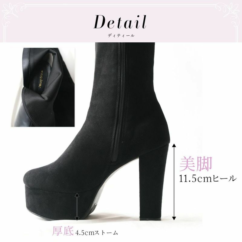 ひざ下から足首をまっすぐキレイに見せるこだわりのカッティング内側ファスナー付きで足首を固定するので歩き易く、柔らかな厚みのある裏地を