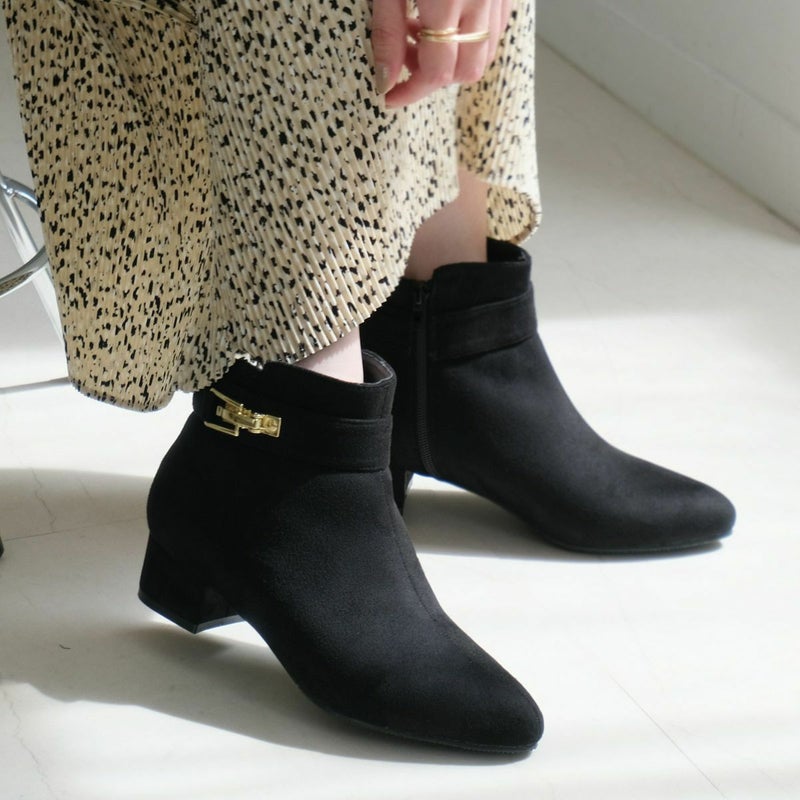 ゴールド金具付きで上品カジュアルに!立体的に形成されたインソールで長時間歩いても疲れにくい履き心地