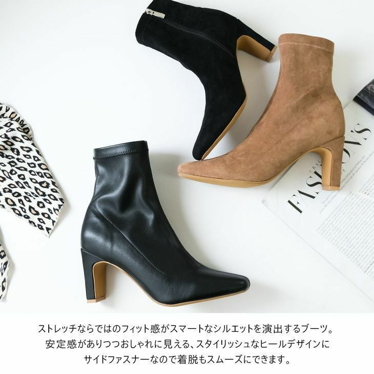 伸縮性のある生地でほどよくフィットし、履きやすさもしっかりキープ安定感がありつつおしゃれに見える、スタイリッシュなヒールデザインです。