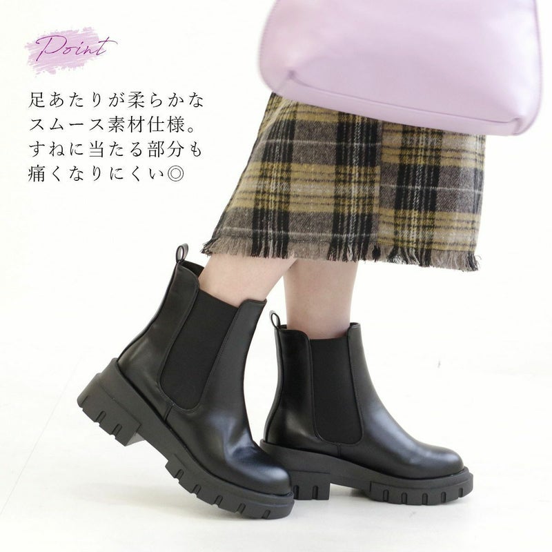 【在庫限り!特別価格!】トラックソールチェルシーブーツサイドゴアブーツ レディース