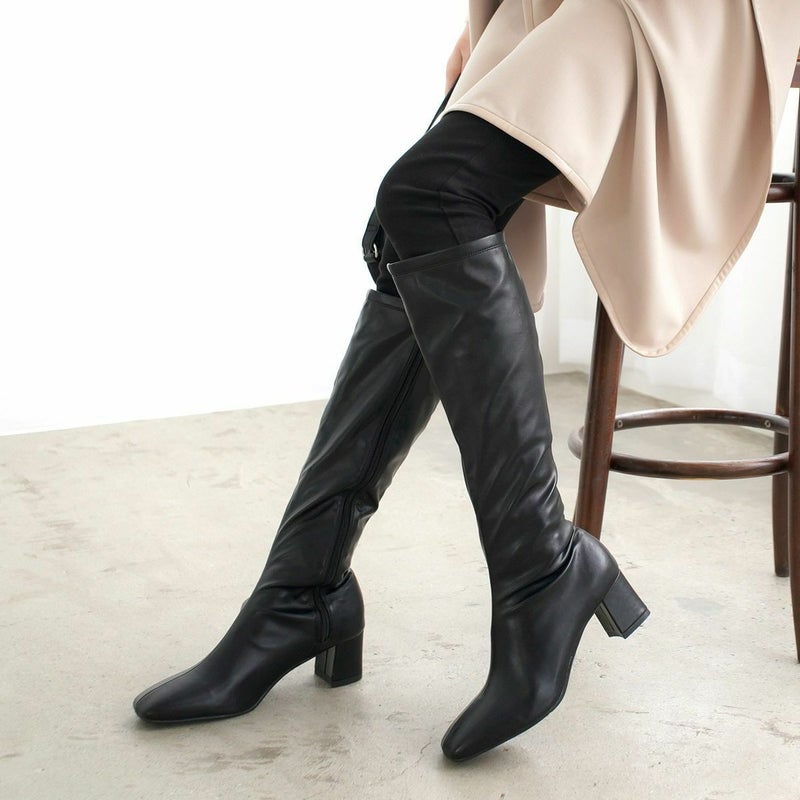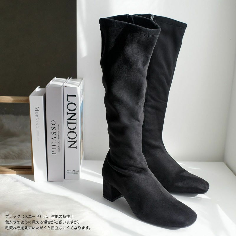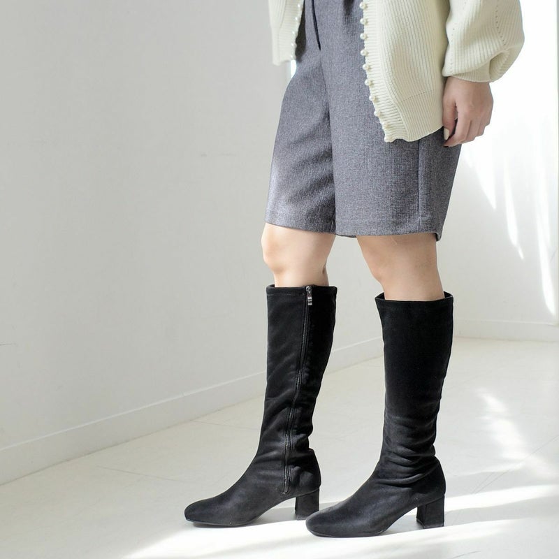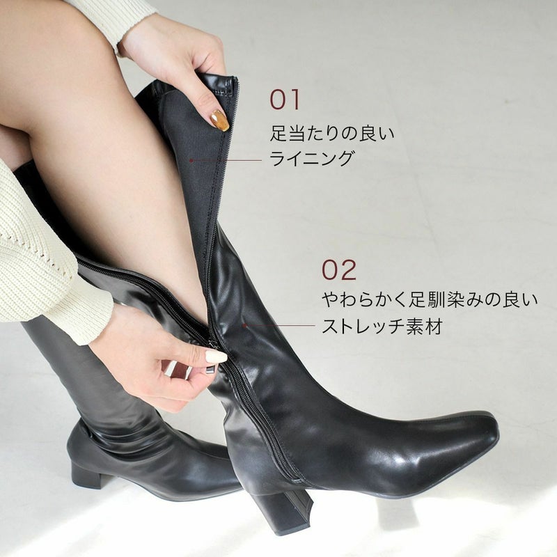 【クリアランスSALE】太ヒールストレッチロングブーツ レディース