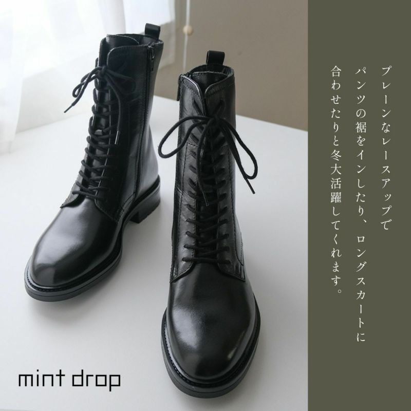 脚長効果バツグン!プレーンなミドル丈レースアップブーツ
