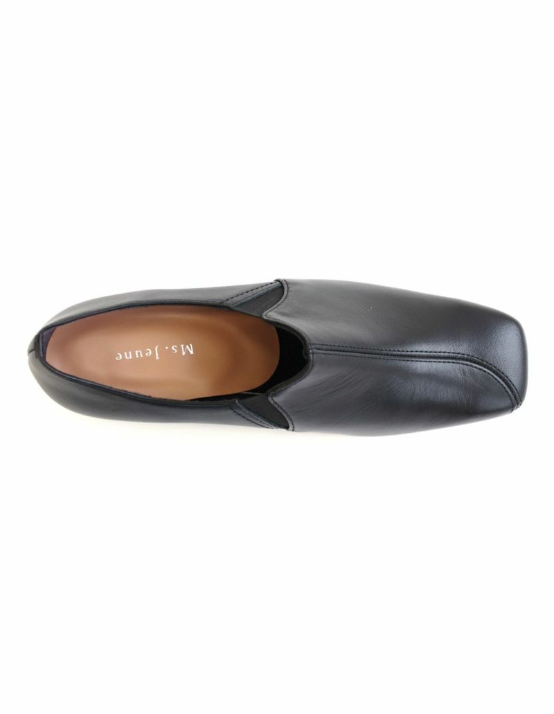 サイドゴアと甲深デザインでしっかり足にフィットします。ヒールは3.5cmと歩きやすい高さで、メタルパーツが上品に光ります。
