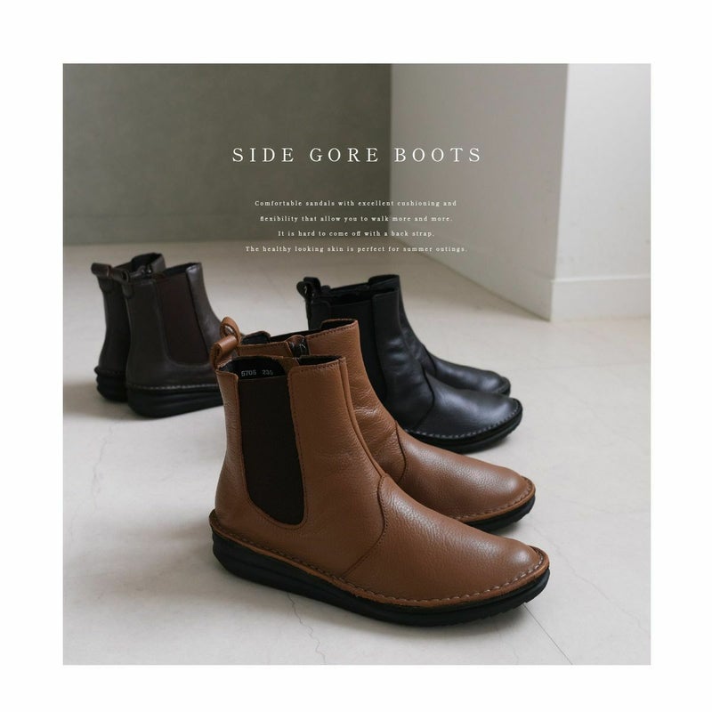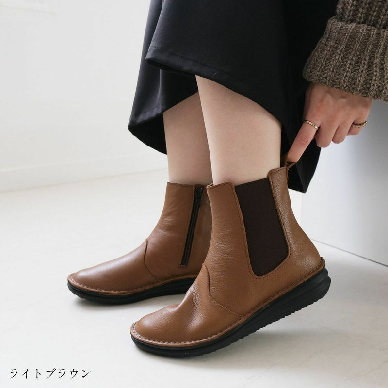 アウトステッチ製法で合わせたソールの軽量サイドゴアブーツ