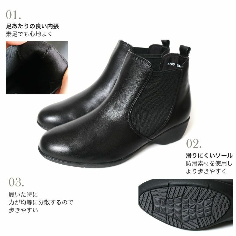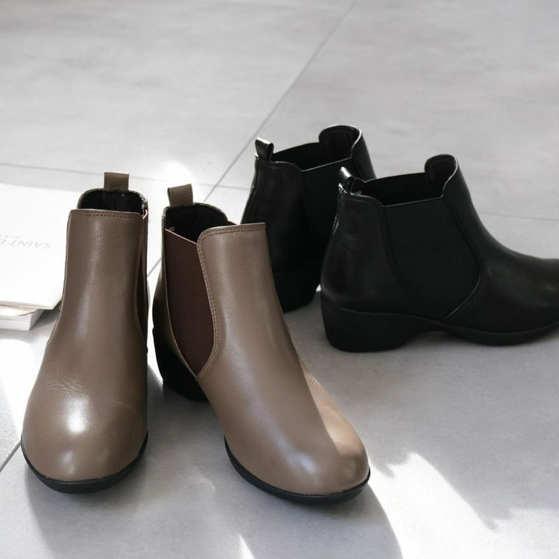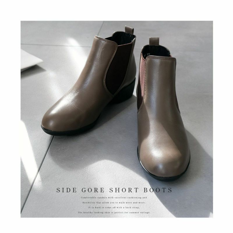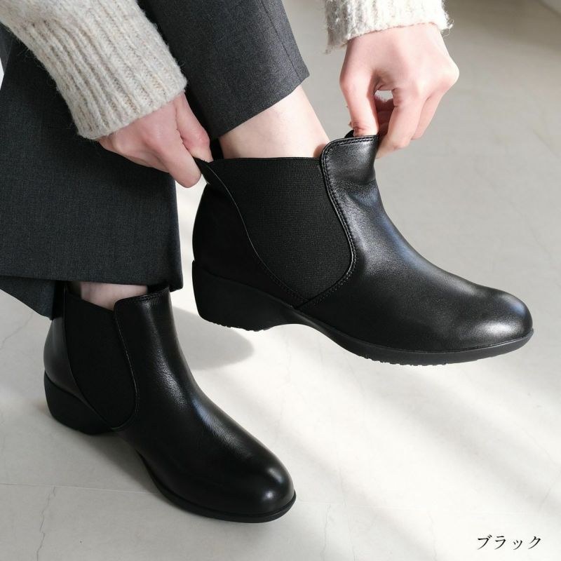 サイドゴアショートブーツ本革 レディース
