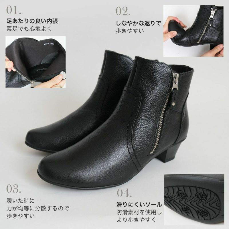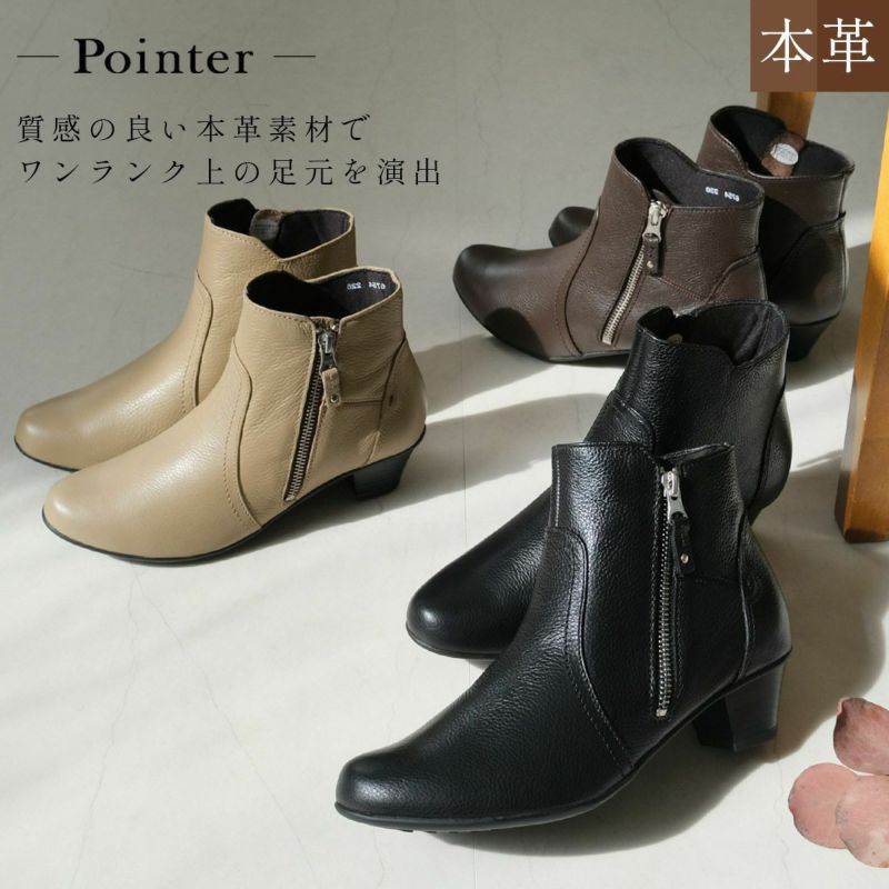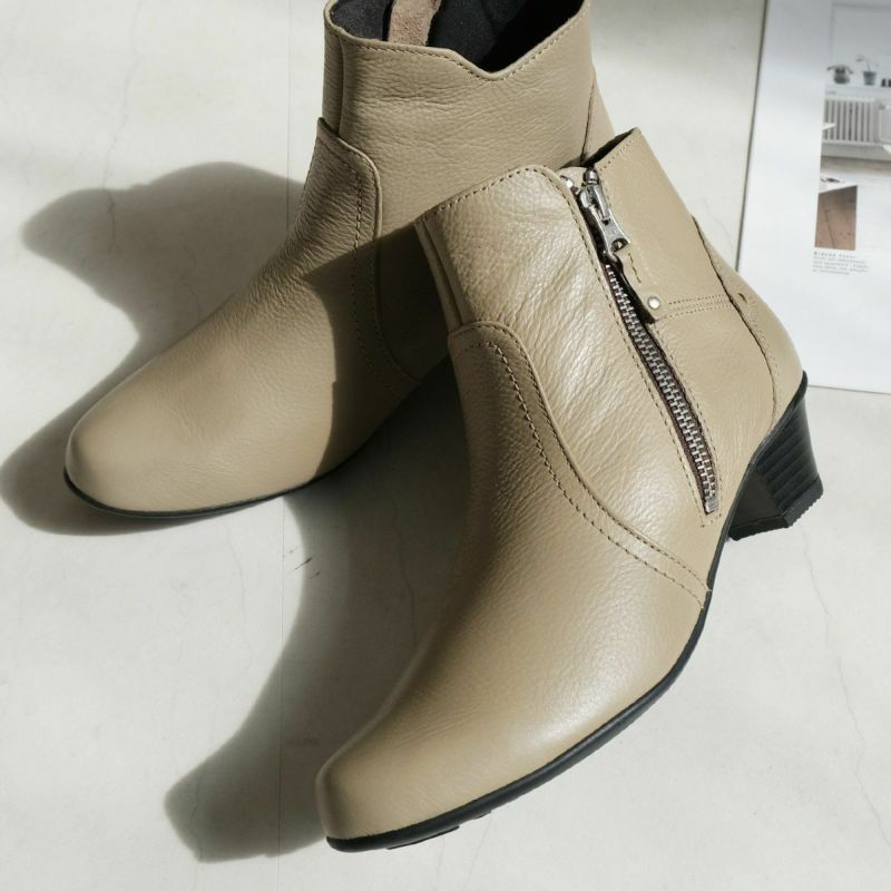 【在庫限り!特別価格!】サイドファスナーショートブーツ本革 レディース
