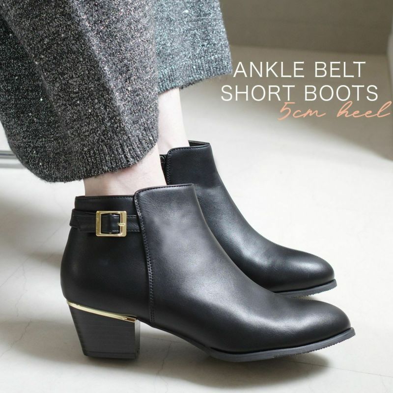 アンクルベルトショートブーツ レディース