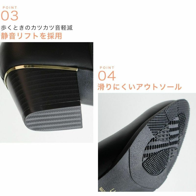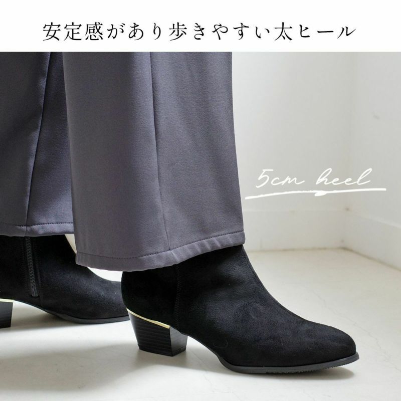 足首丈でスタイリングしやすく、すっきり美脚見え!厚みのあるふかふかインソールと内張クッションで履き心地もよく、太ヒールで歩きやすく安定感バツグン。