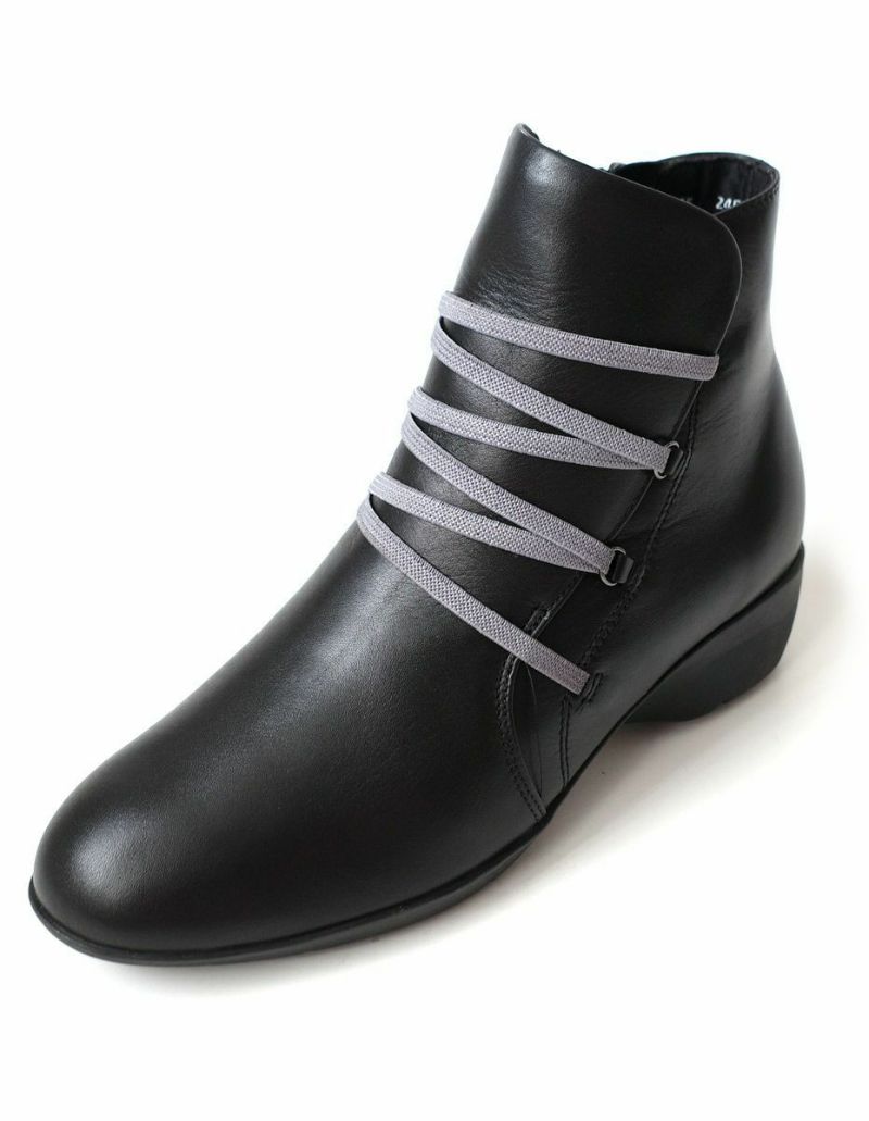 飾りゴムをジグザグに通したデザインが特徴的なショートブーツ