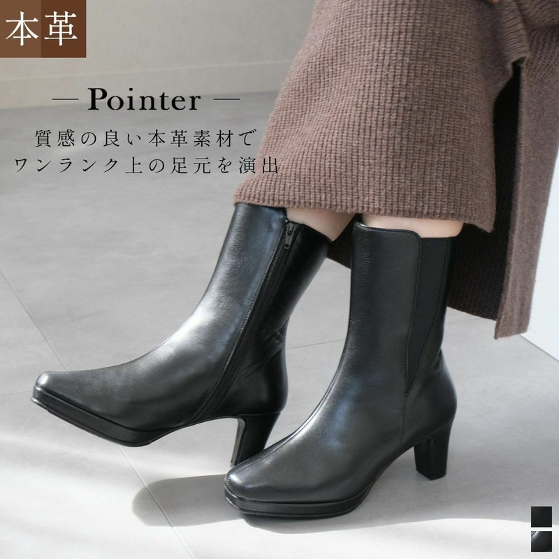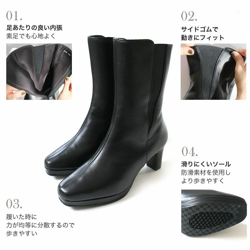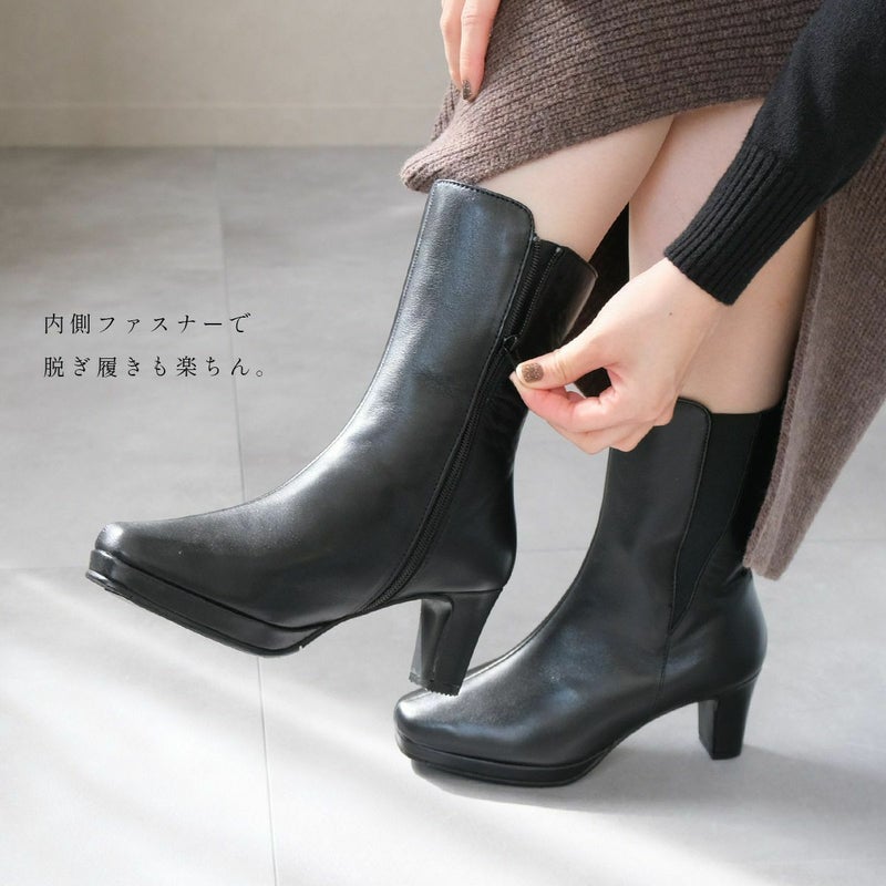 【在庫限り!特別価格!】サイドゴアミドル丈ブーツ本革 レディース