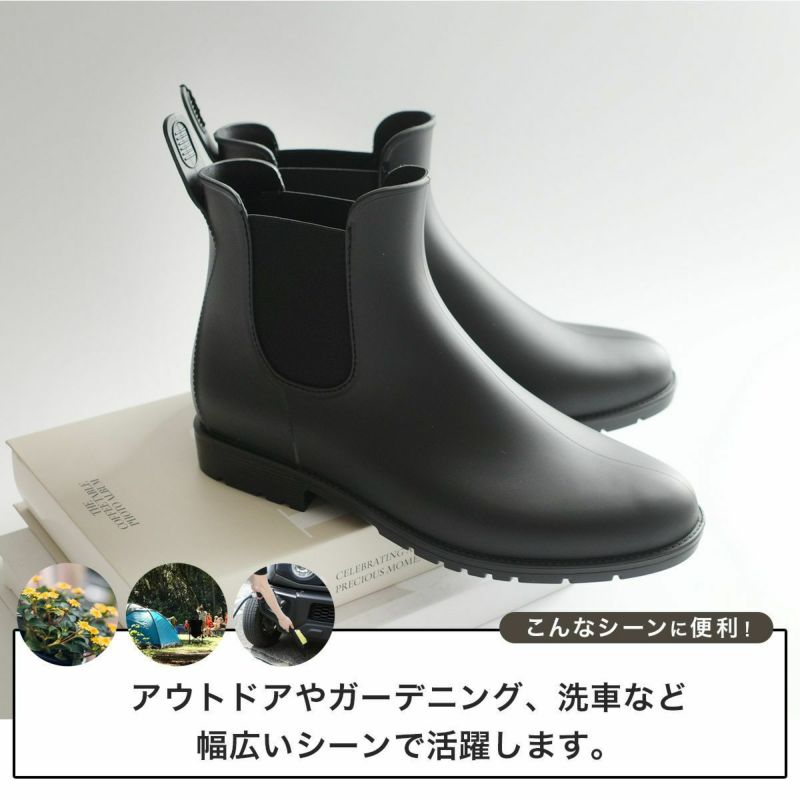 雨が止んでも違和感なく履け、様々なスタイリングに合わせやすい万能アイテム!防水・防滑仕様で、雨の日も快適に過ごせます。