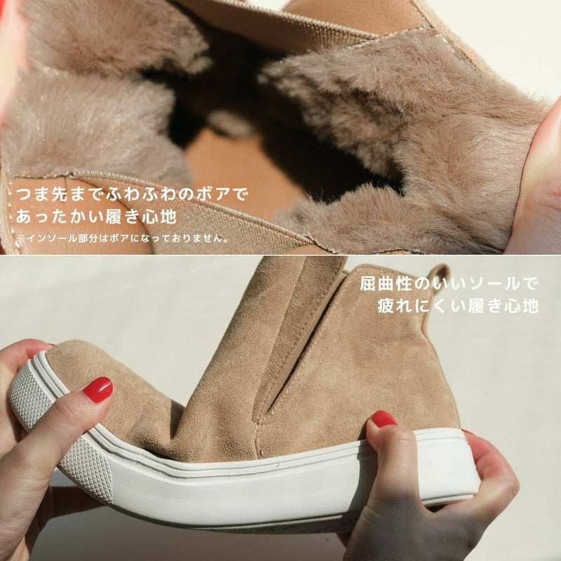 ベーシックで使いやすいアンクル丈で脱ぎ履き楽ちんインナーにはモコモコのボアを全面にあしらって、包み込まれるような優しい履き心地