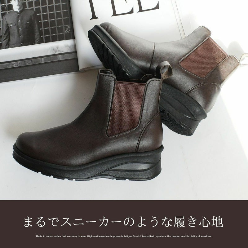 履き心地・品質にこだわった安心の日本製。297gと驚きの軽さで足が疲れにくく、サイドゴアで着脱もラクラク。