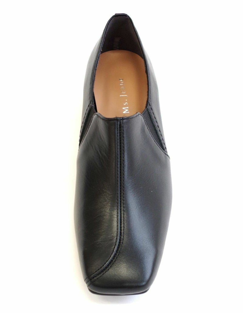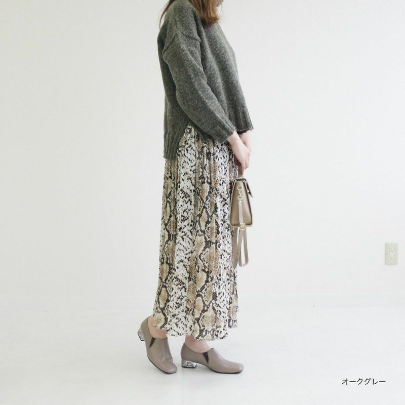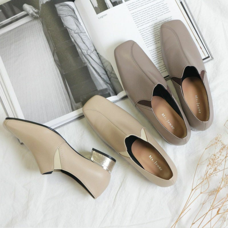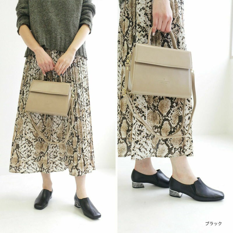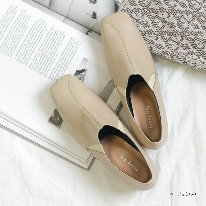サイドゴアと甲深デザインでしっかり足にフィットします。ヒールは3.5cmと歩きやすい高さで、メタルパーツが上品に光ります。