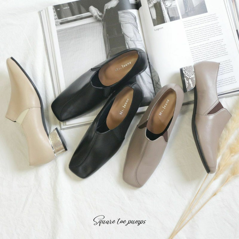 スクエアトゥと異素材ヒールがお洒落な個性派ブーティ!