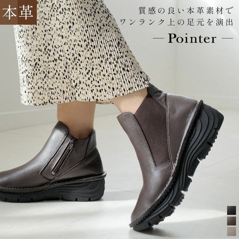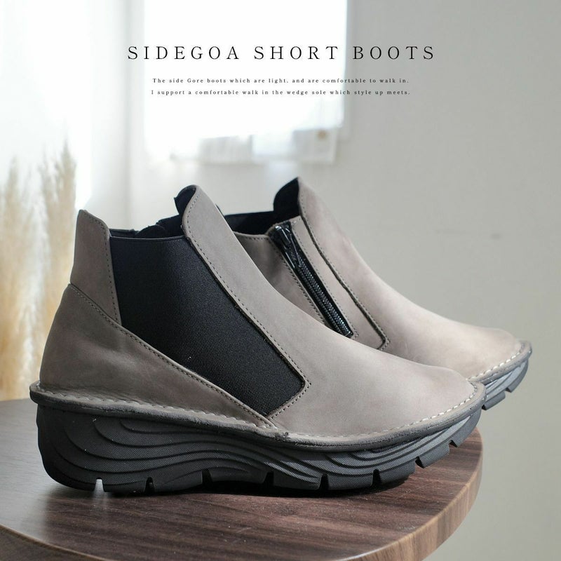 本革サイドゴアショートブーツ レディース