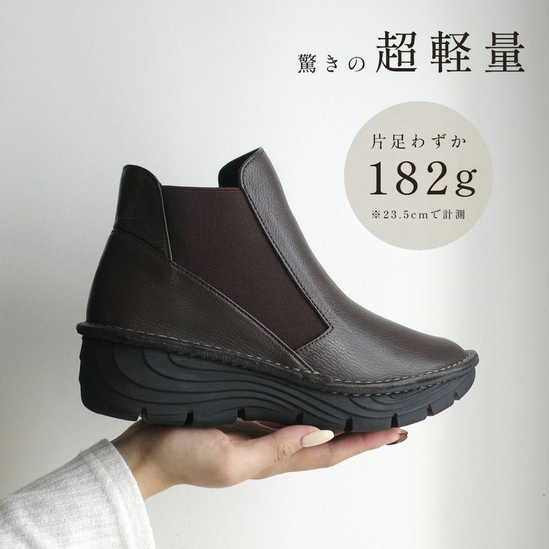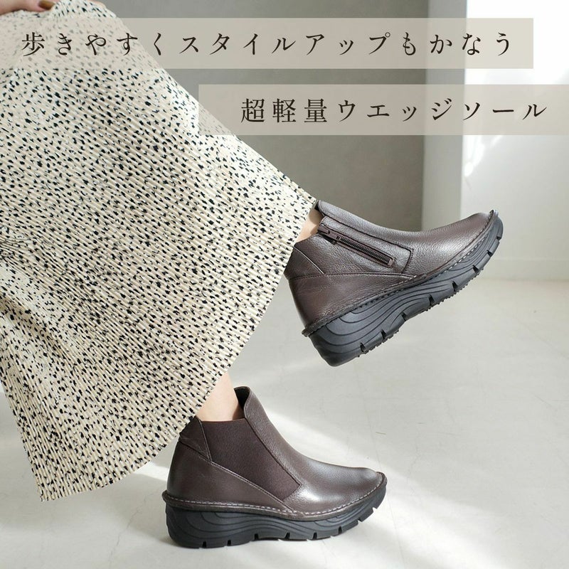 ボリュームのあるソールなのに驚きの超軽量!さりげなくスタイルアップがかなうウエッジソールは安定感に優れ、安定した歩行を実現。