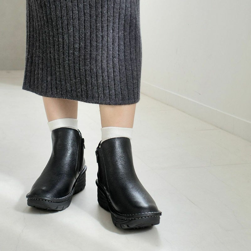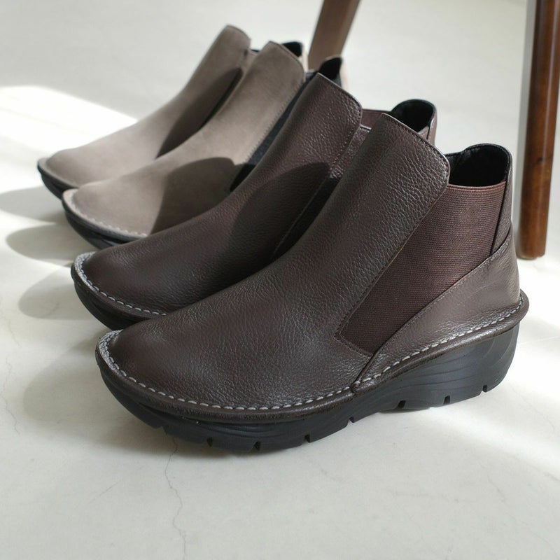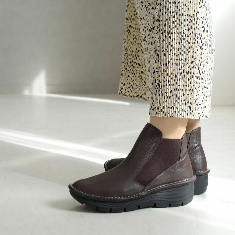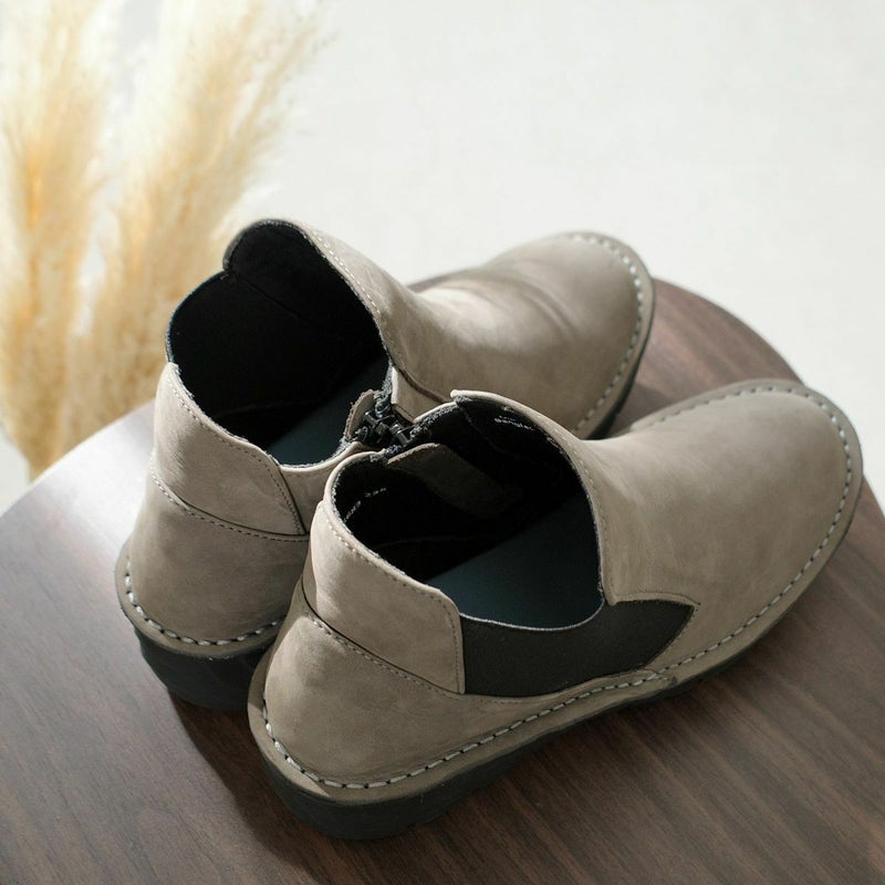 サイドゴムを独特なカッティングで魅せるデザインが美しいブーツ