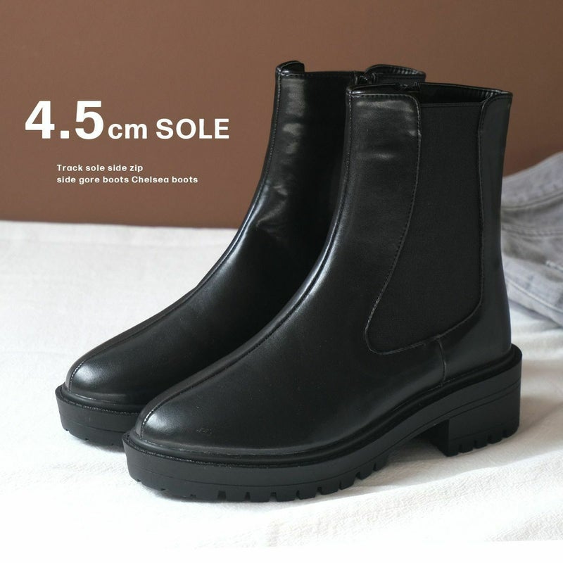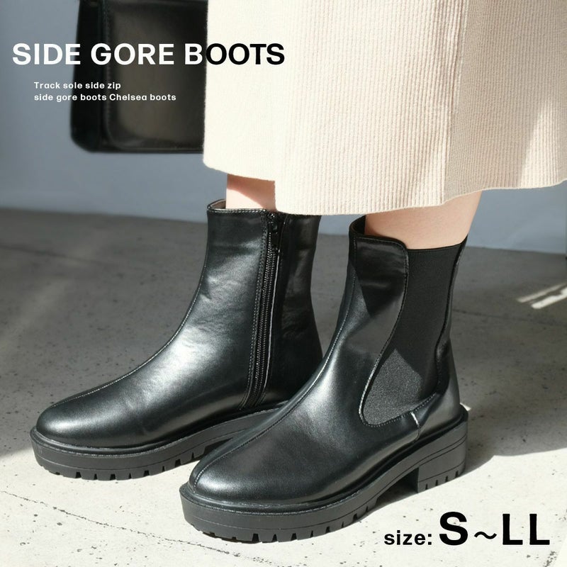 【在庫限り!特別価格!】トラックソールサイドジップサイドゴアブーツチェルシーブーツ レディース