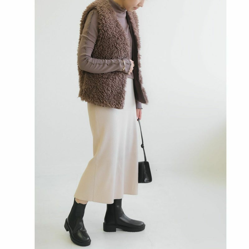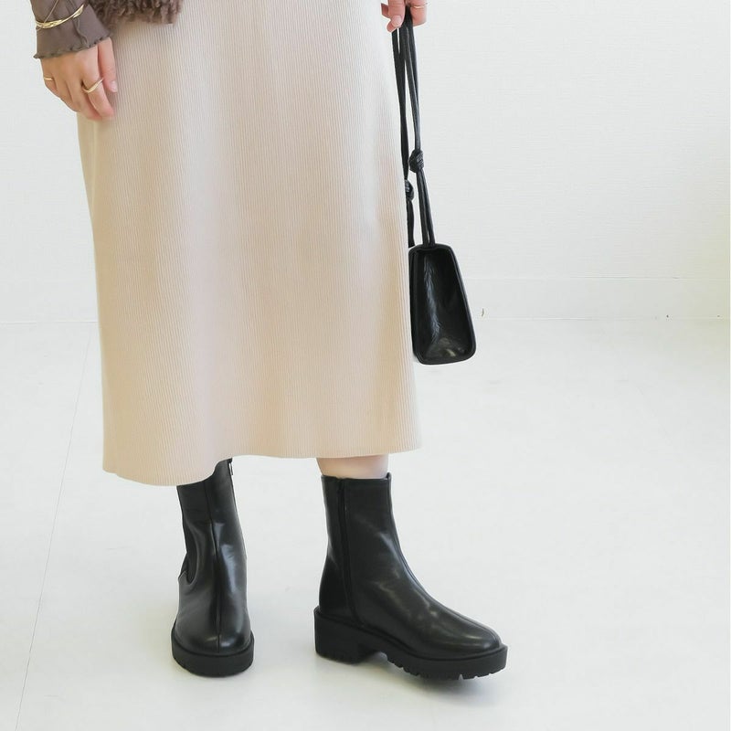 ボリューム感のあるソールがバランス良く足をきれいに見せてくれます着脱しやすい内ファスナーで脱ぎ履きもスムーズにできます。