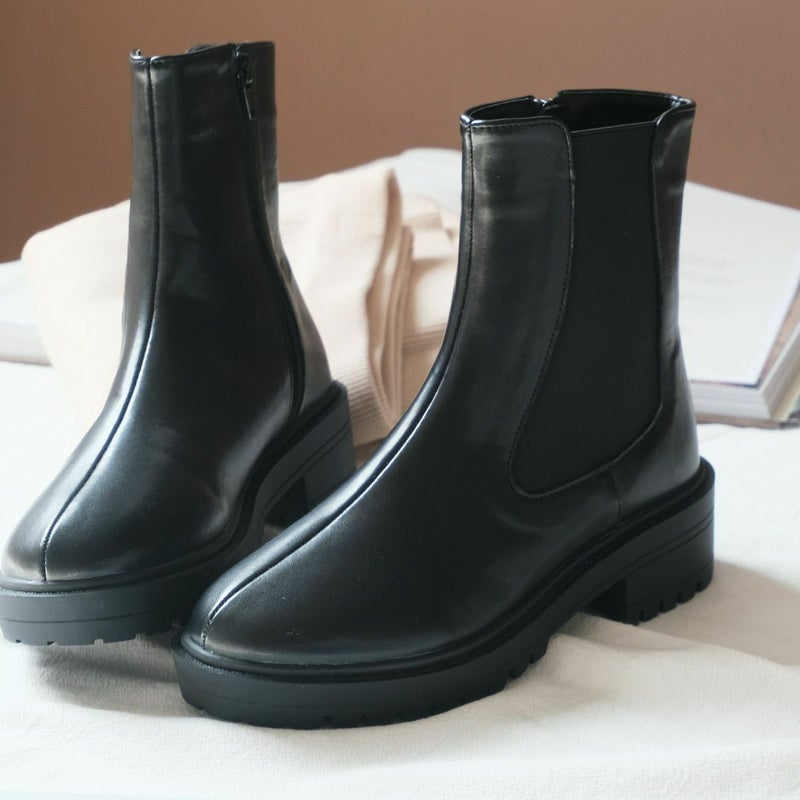 旬なスタイリングを叶えるサイドジップ付きトラックソールブーツ