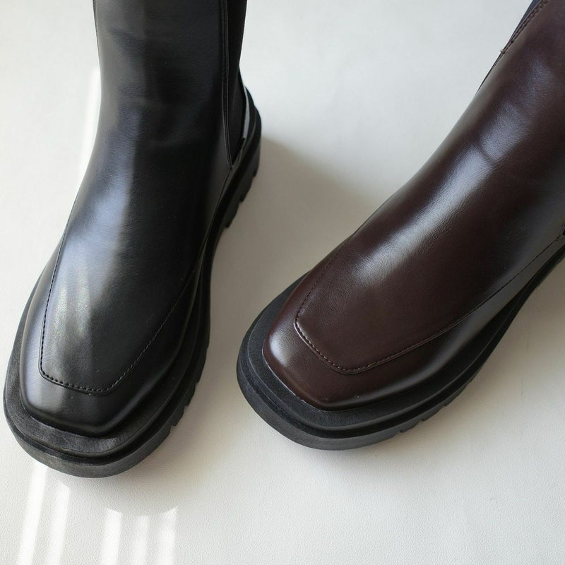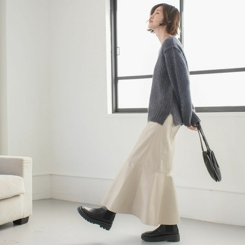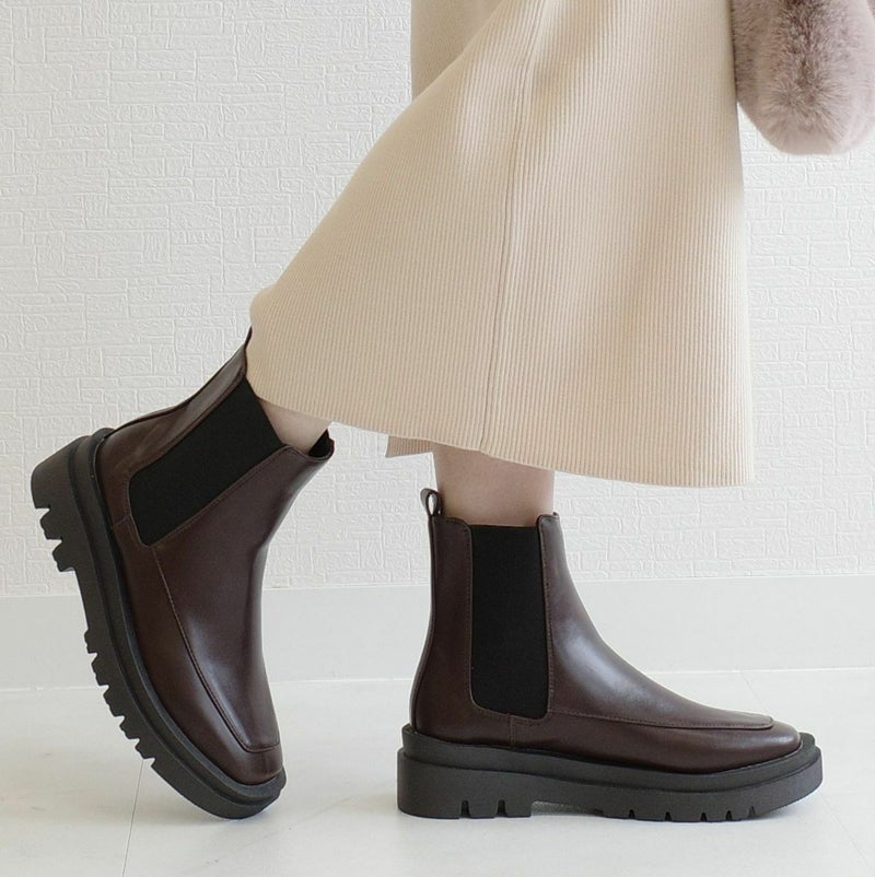 サイドゴアブーツにボリュームを足元につけ今年らしいデザインに
