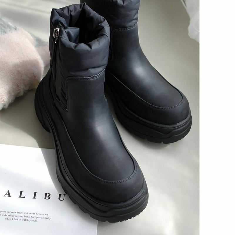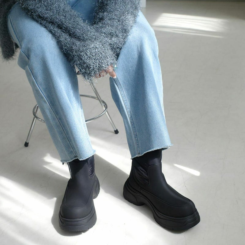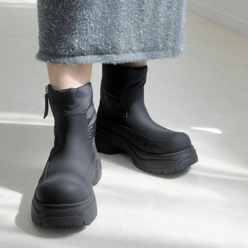 筒周りはすっきりとしているのでボリューム感にメリハリもあり、大人っぽい厚底ブーツとなっています。