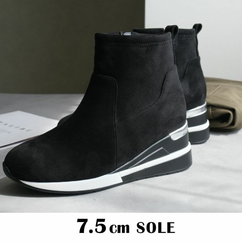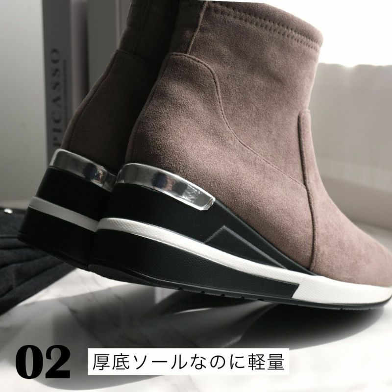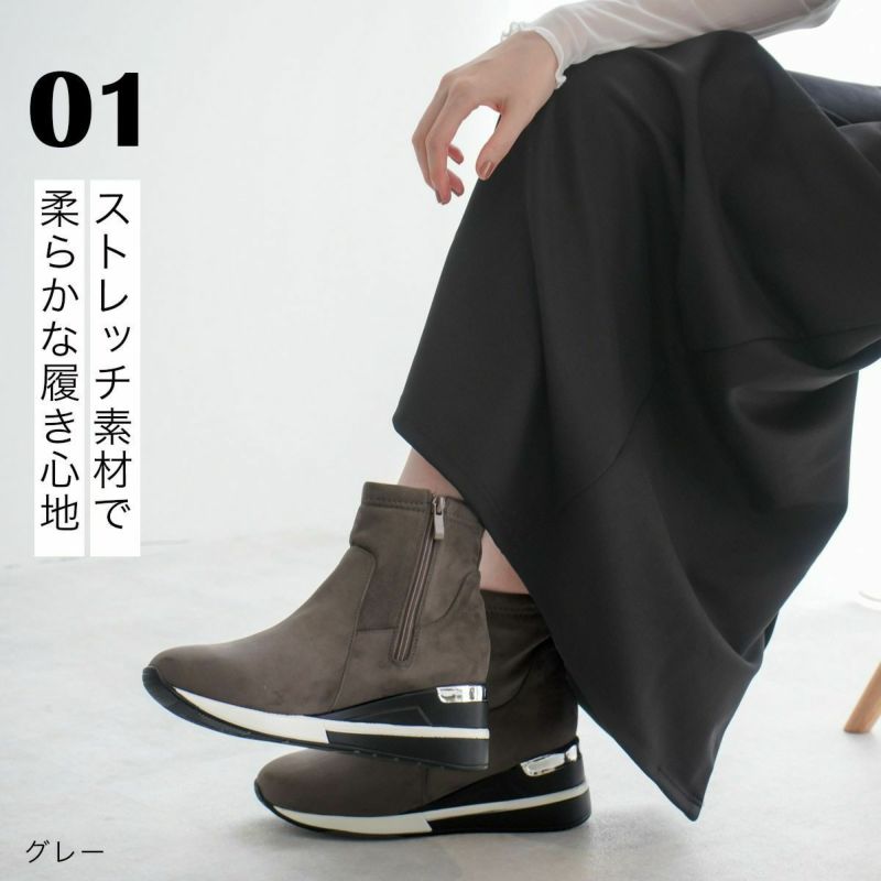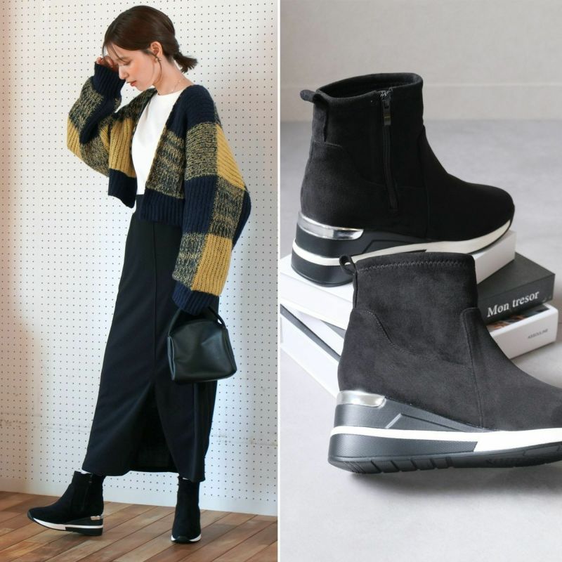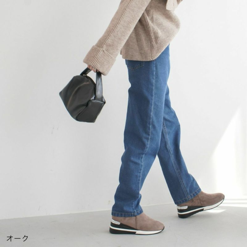 柔らか裏地クッションで優しく包み込んでくれるボリュームのあるスニーカーソールは楽ちんなのにスタイルアップが叶う!