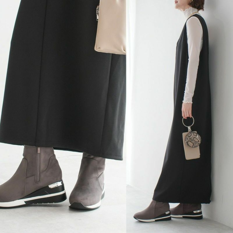 足首も隠れる筒丈は内側ファスナー付きで脱ぎ履きもスムーズ