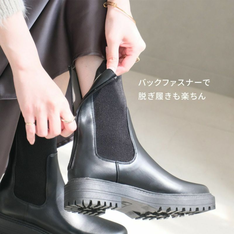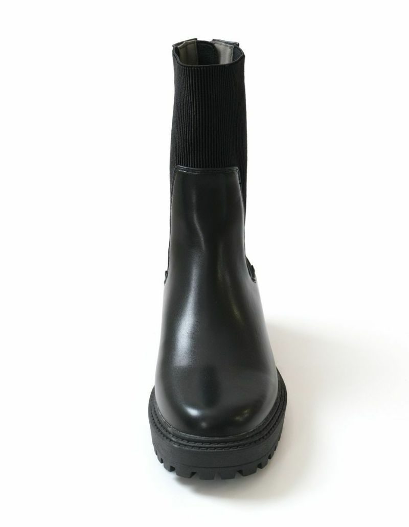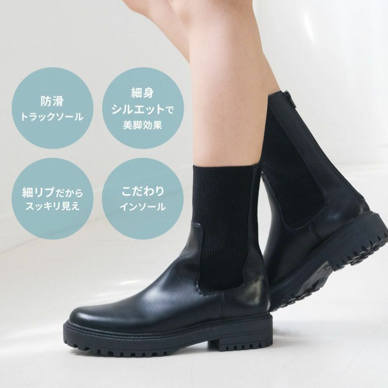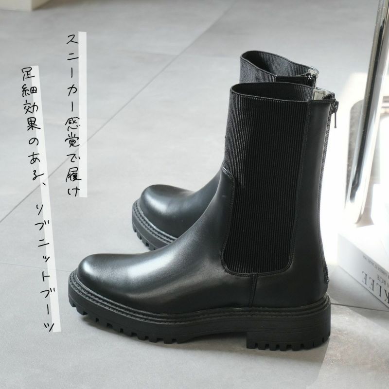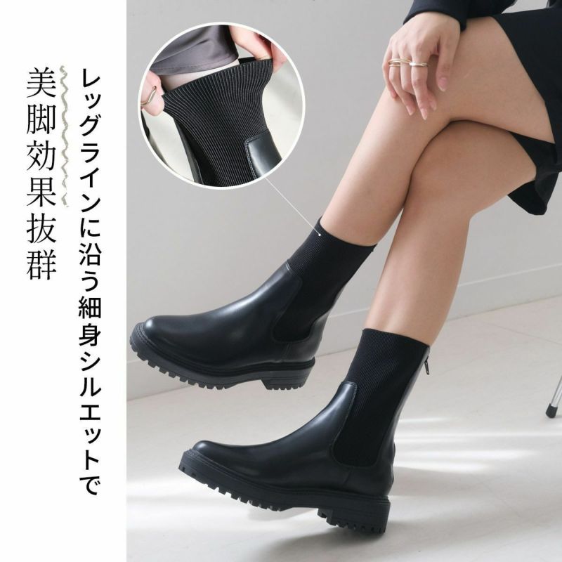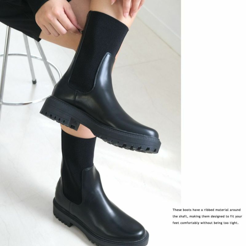 リブニットブーツチェルシーブーツニットソックストラックソール厚底 レディース