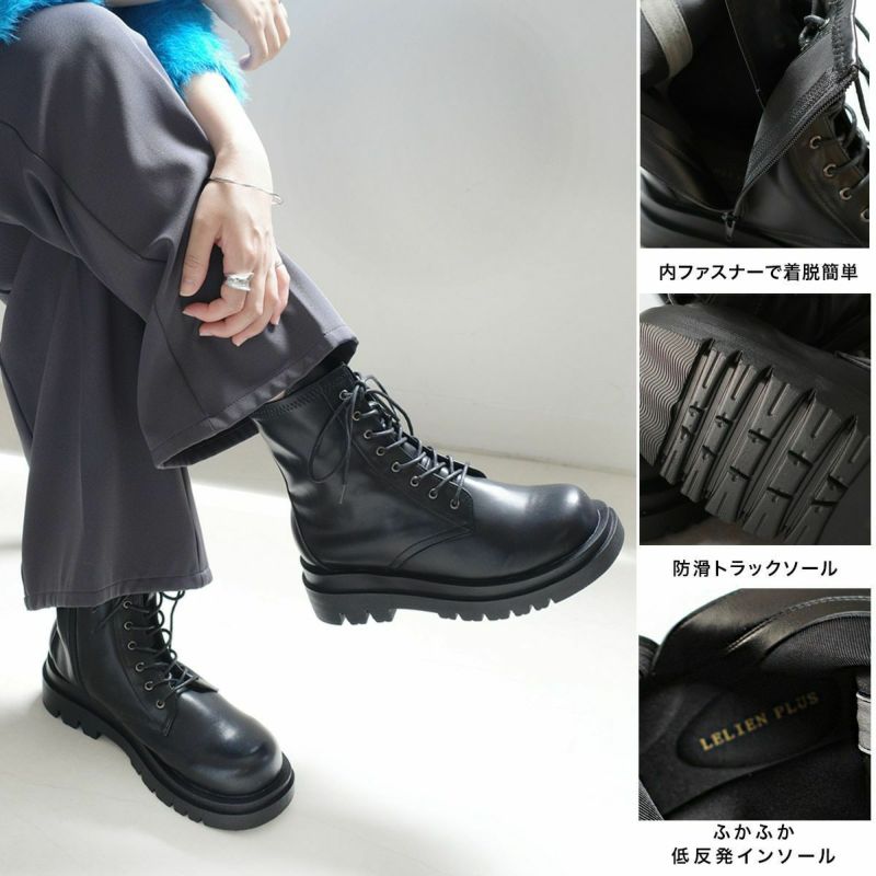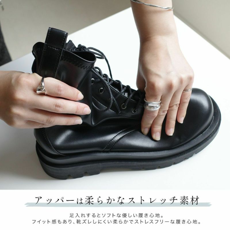 レースアップ 編み上げ ブーツコンバットブーツトラックソール厚底 レディース