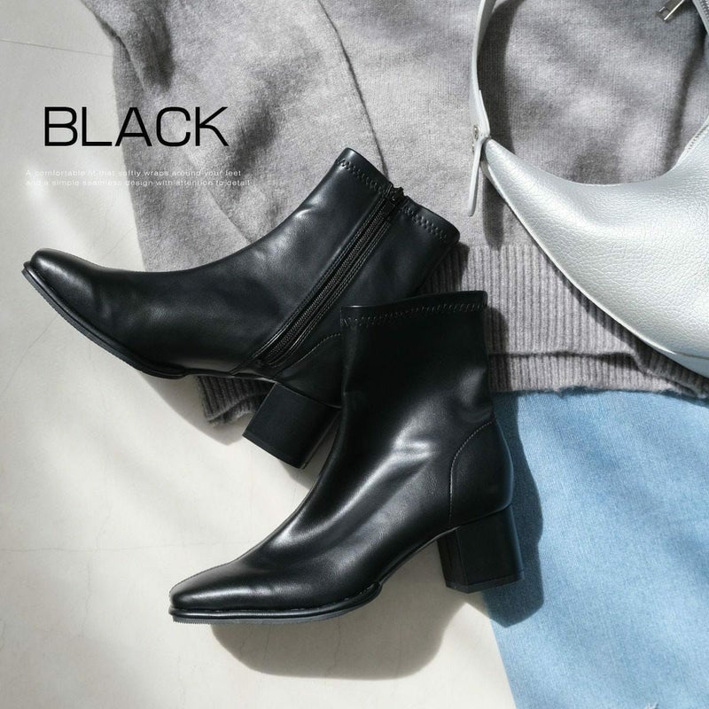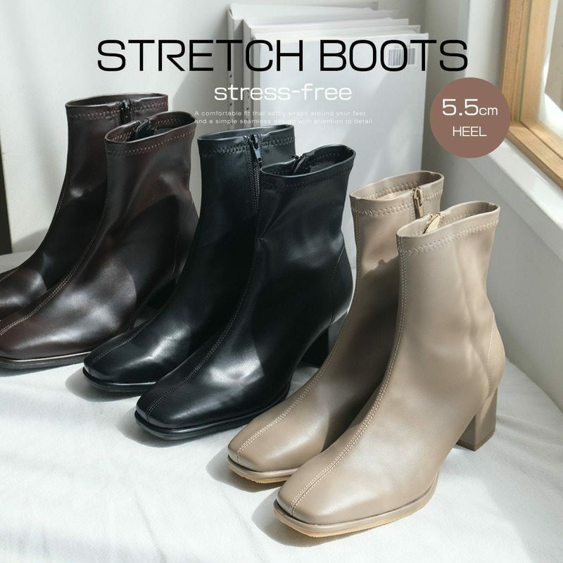 ストレッチブーツショートブーツスクエアトゥ レディース