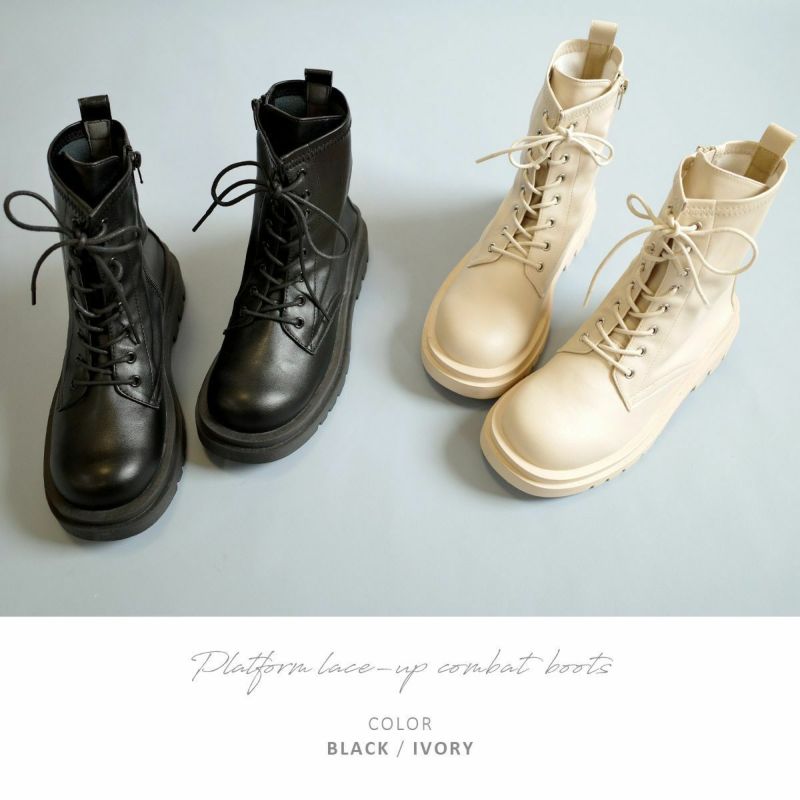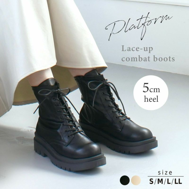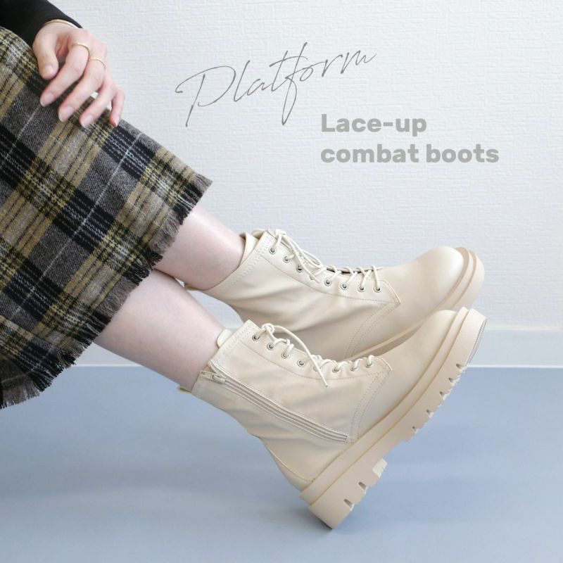 レースアップ 編み上げ プラットフォームブーツコンバットブーツ レディース