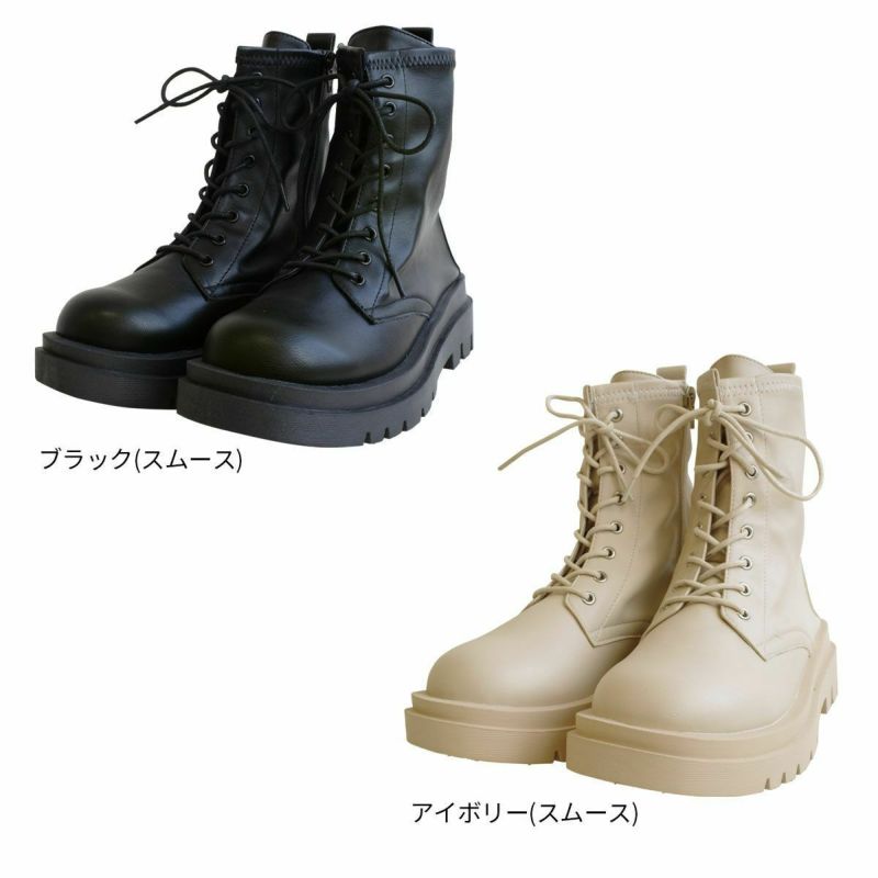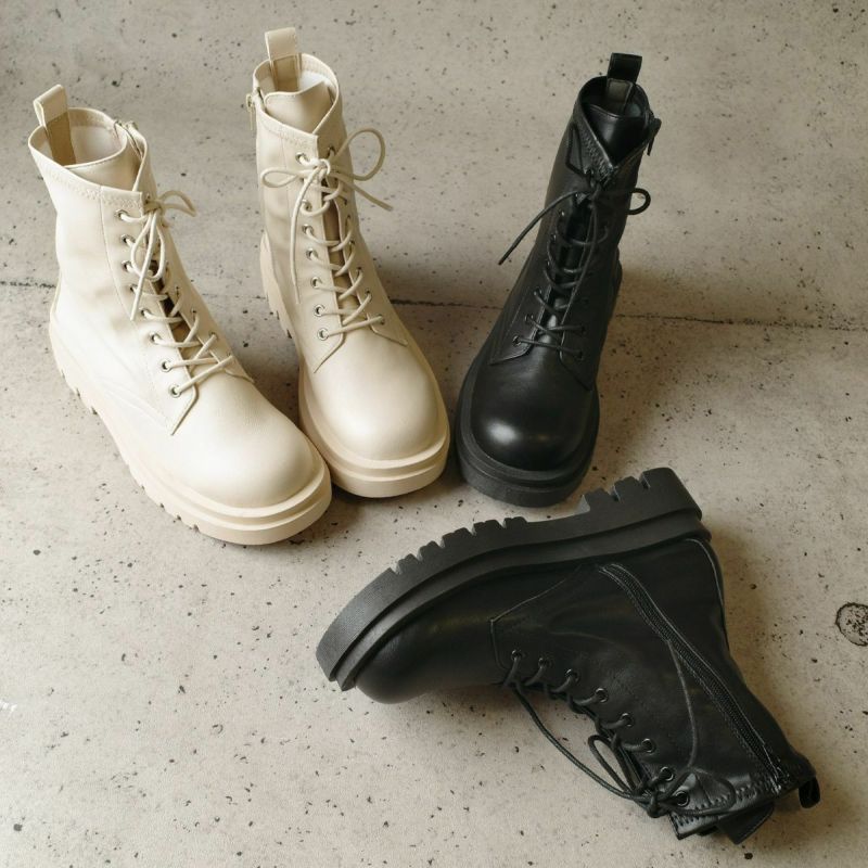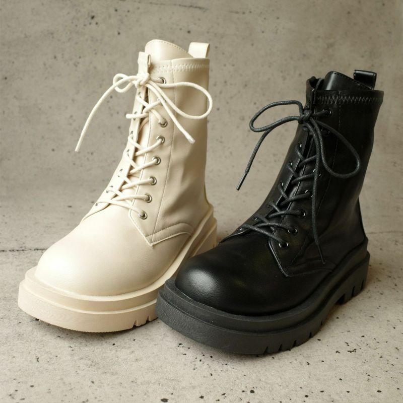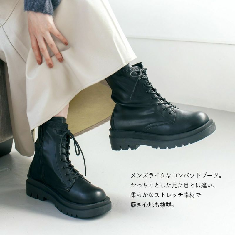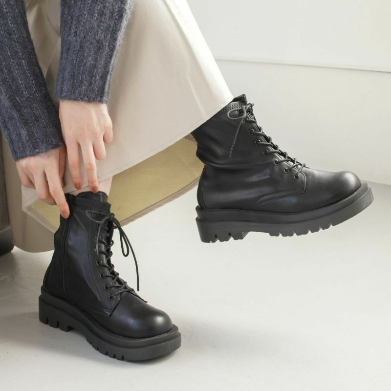 ストレッチ素材が柔らかく履きやすいコンバットブーツ。