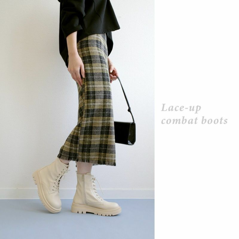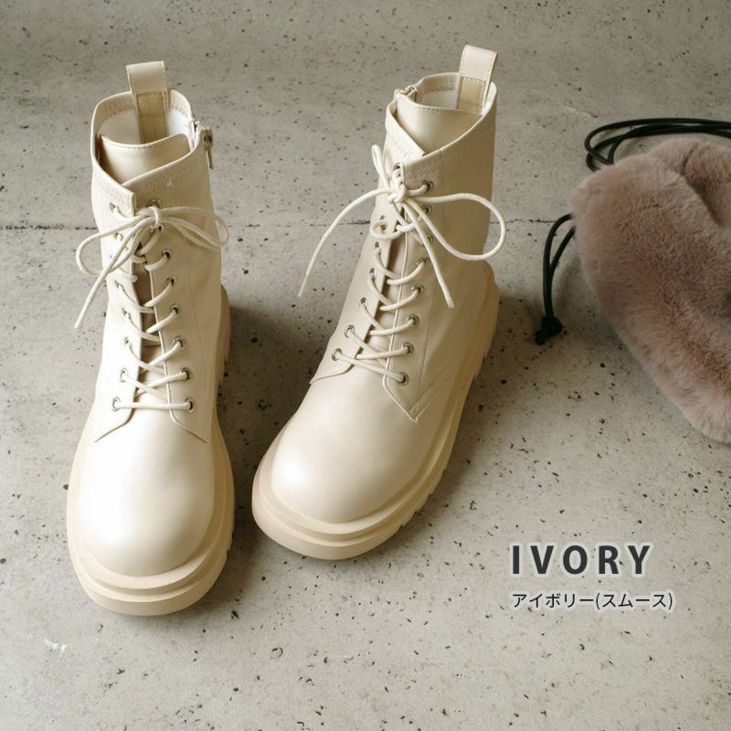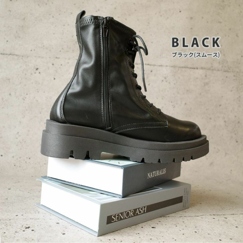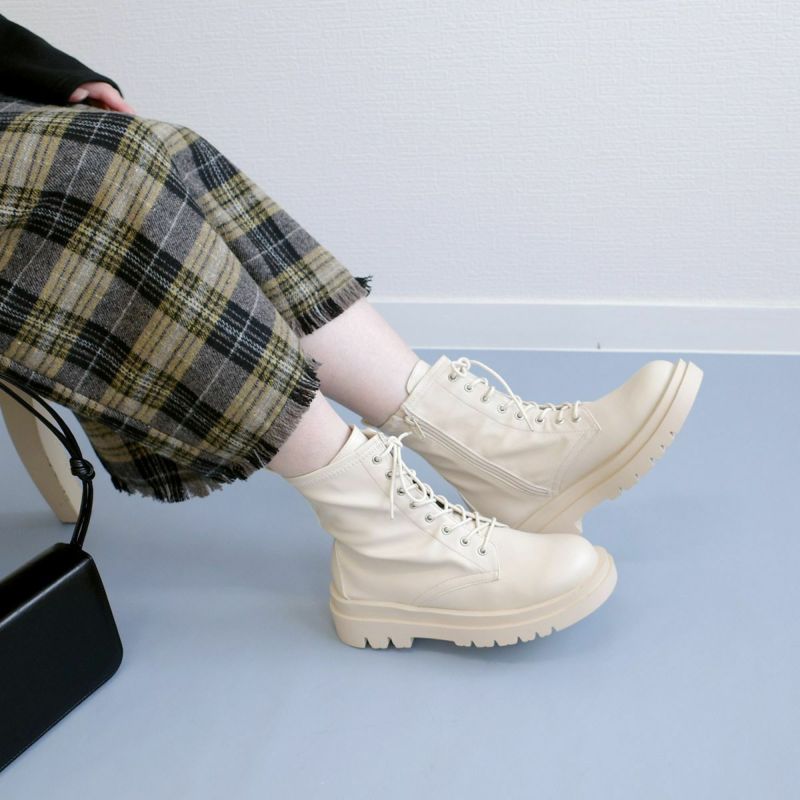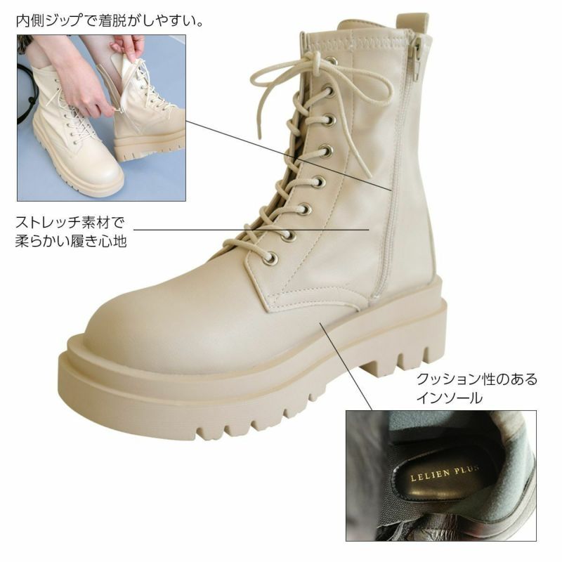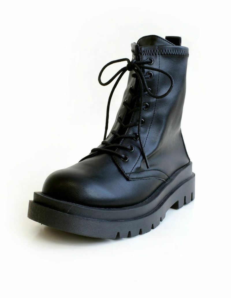 ストレッチ素材が柔らかく履きやすいコンバットブーツ。