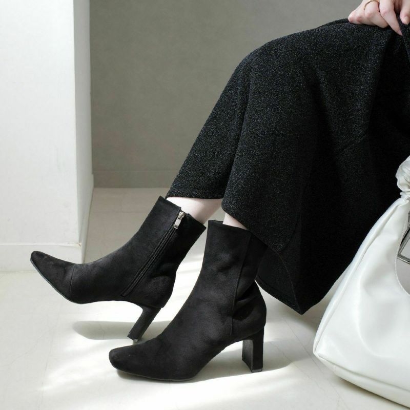 ミドル丈とセットバックヒールで女性らしい華奢なシルエット