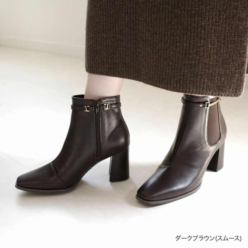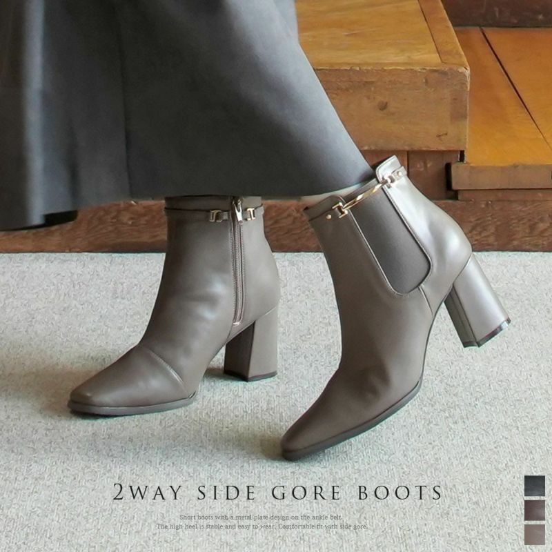 【在庫限り!特別価格!】サイドゴアショートブーツ2WAYメタルパーツ付ベルト レディース