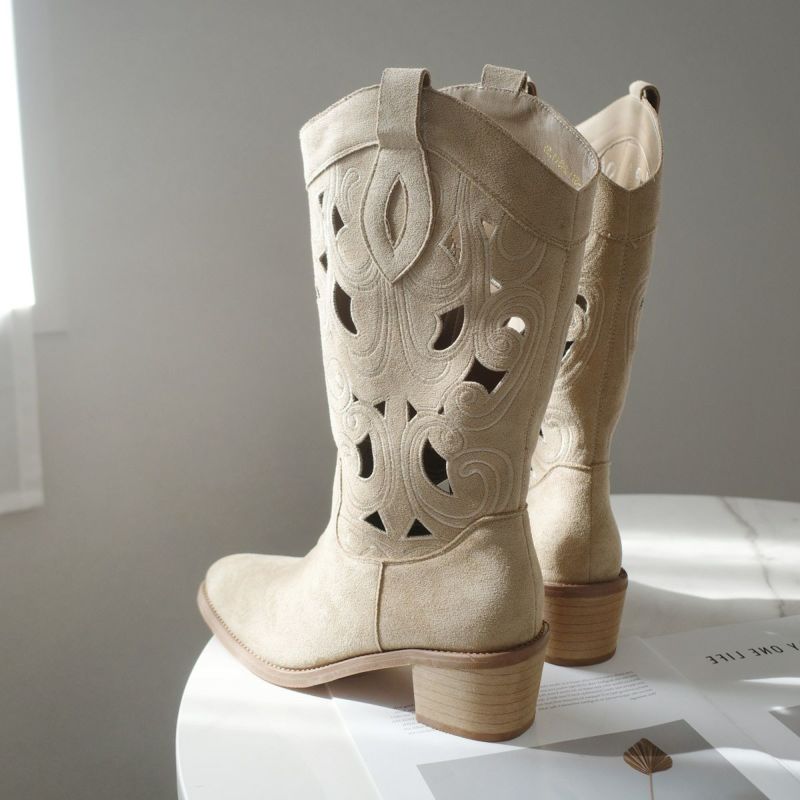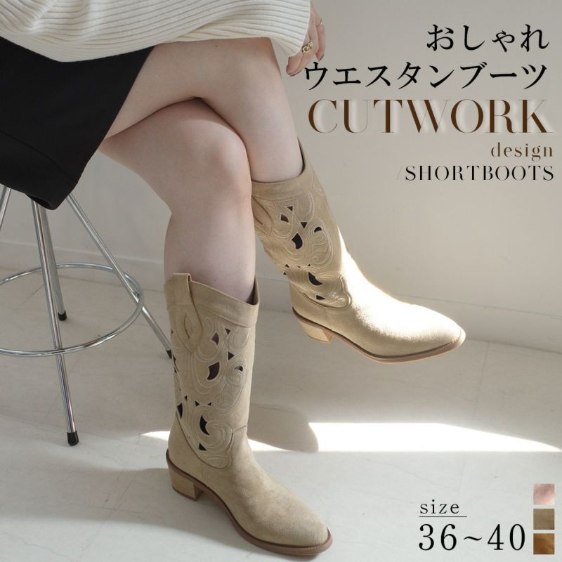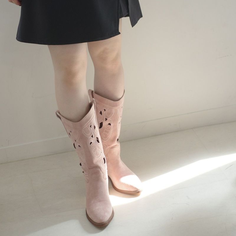 パンチングウエスタンブーツミドルスエード レディース