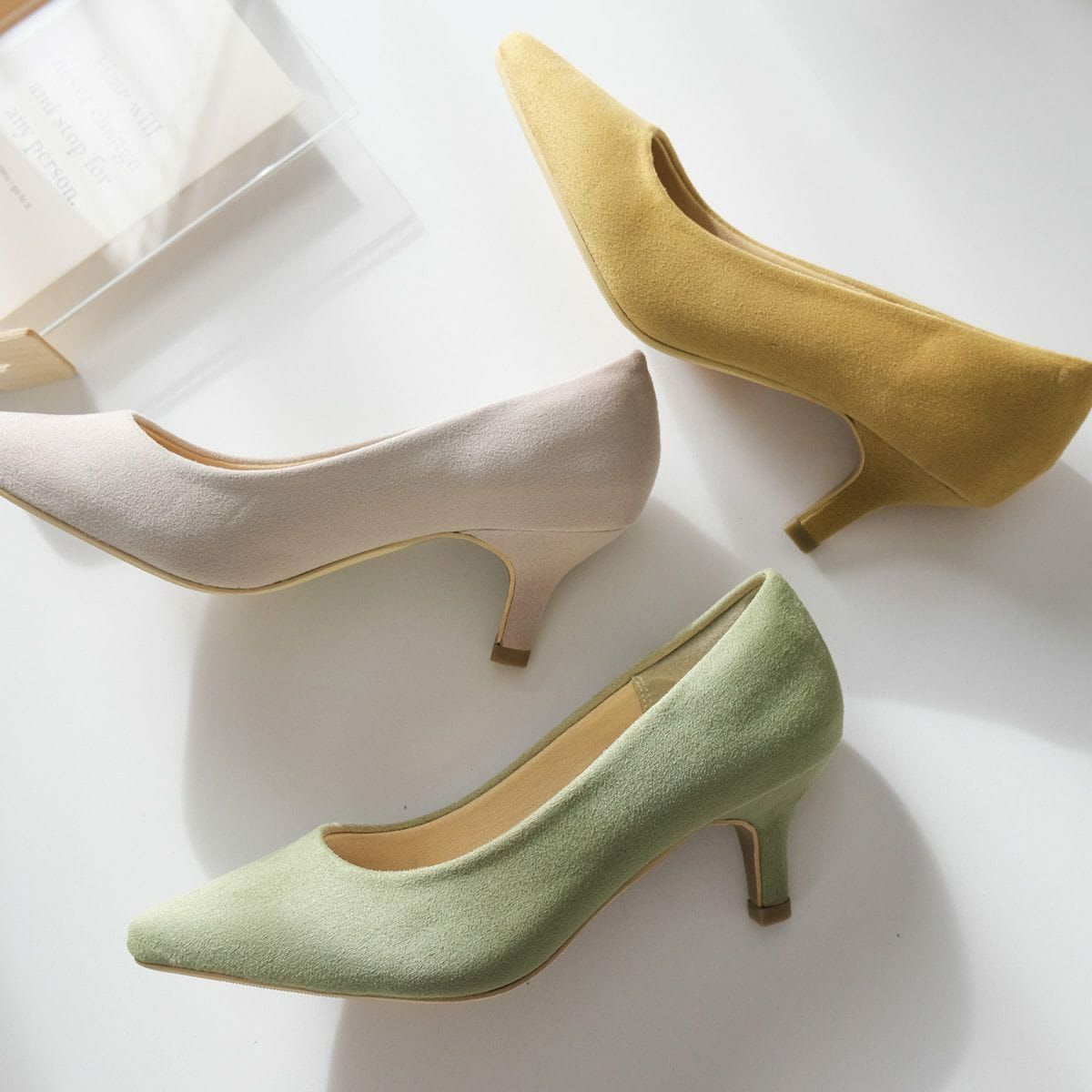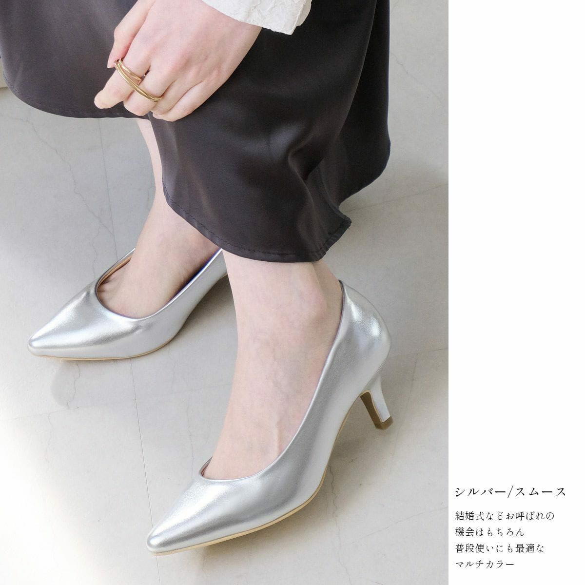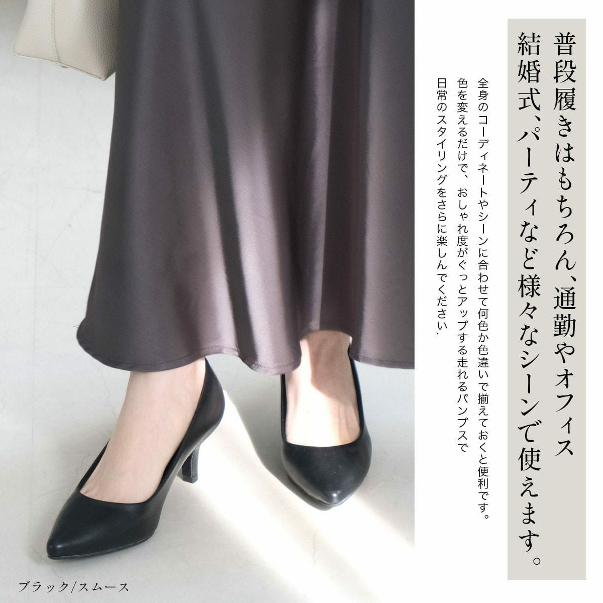 ポインテッドトゥ3cmヒールVカットパンプス レディース