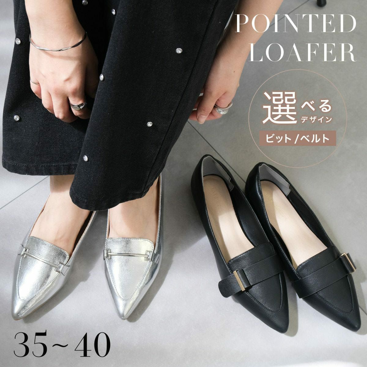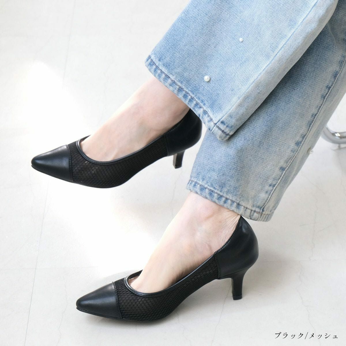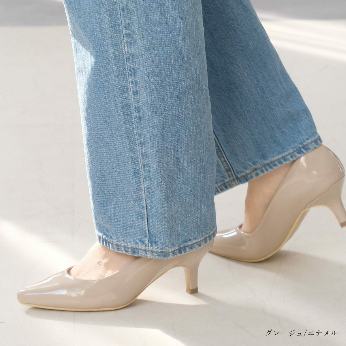 ポインテッドトゥ3cmヒールVカットパンプス レディース