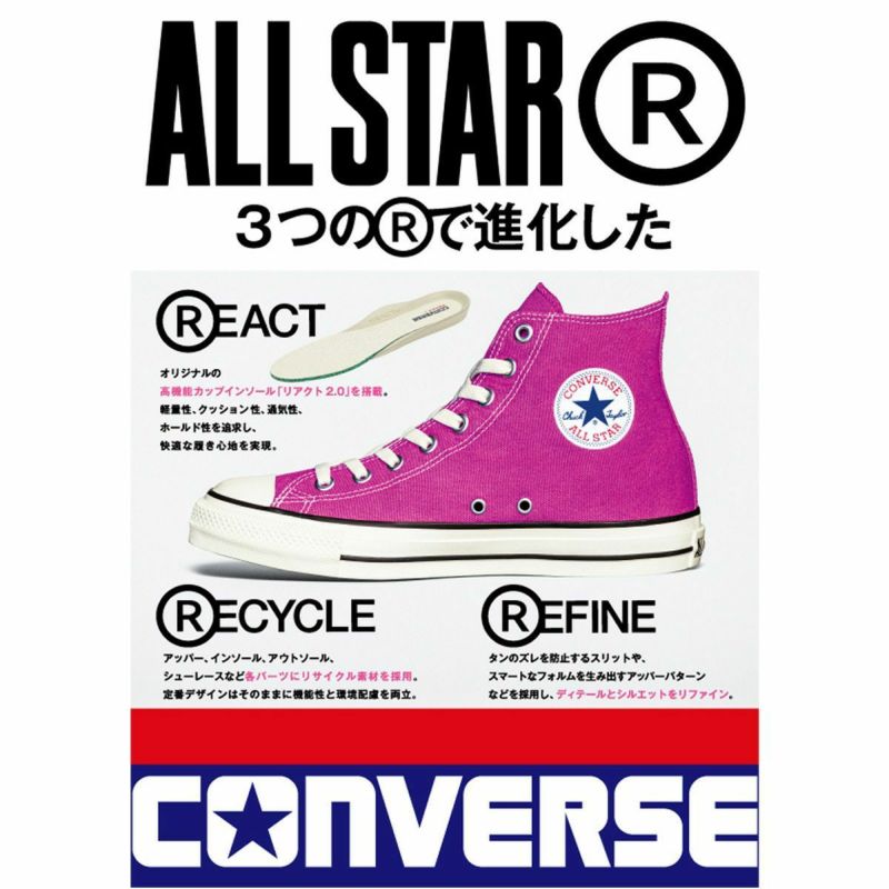 履き心地をアップグレードしたコンバースオリジナルの高機能カップインソール「REACT2.0」を搭載。
