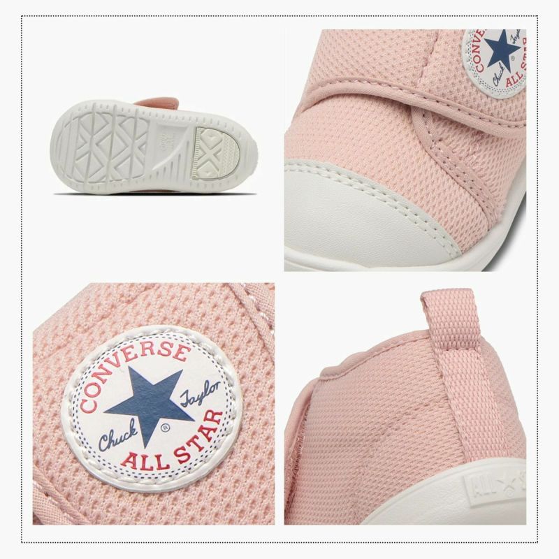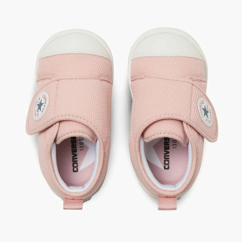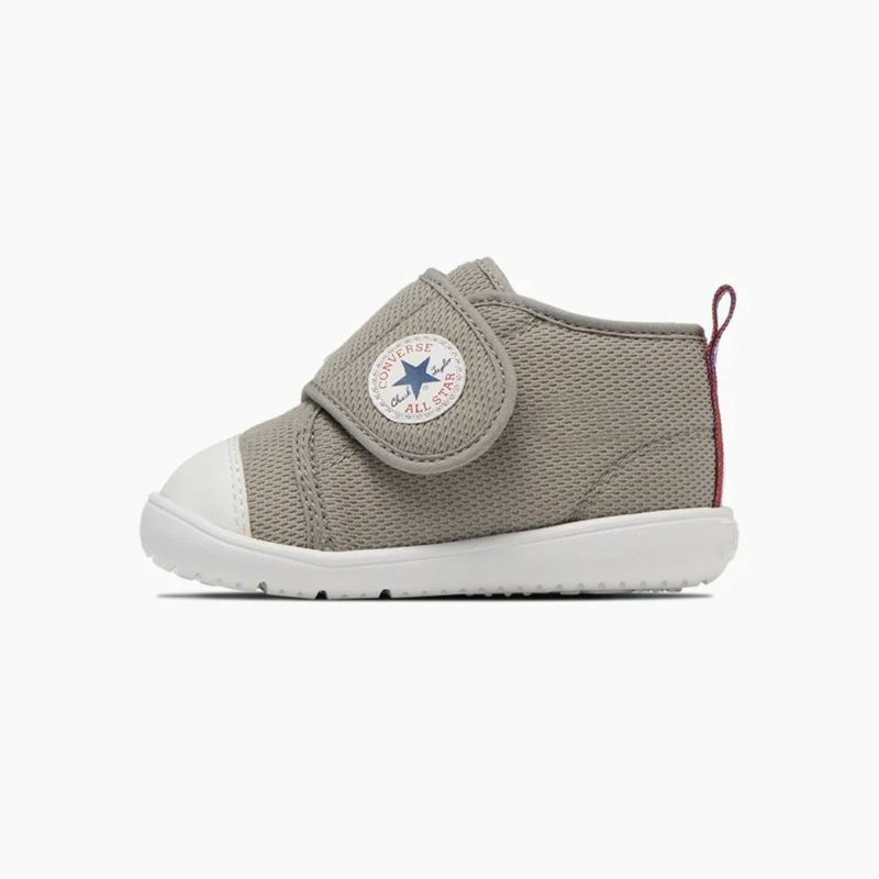 インジェクションE.V.A.ソールを採用した軽量のベビー向けオールスター。柔らかなメッシュ素材をアッパーに使用し、ワンベルトタイプでガバッと開くパターンを採用。