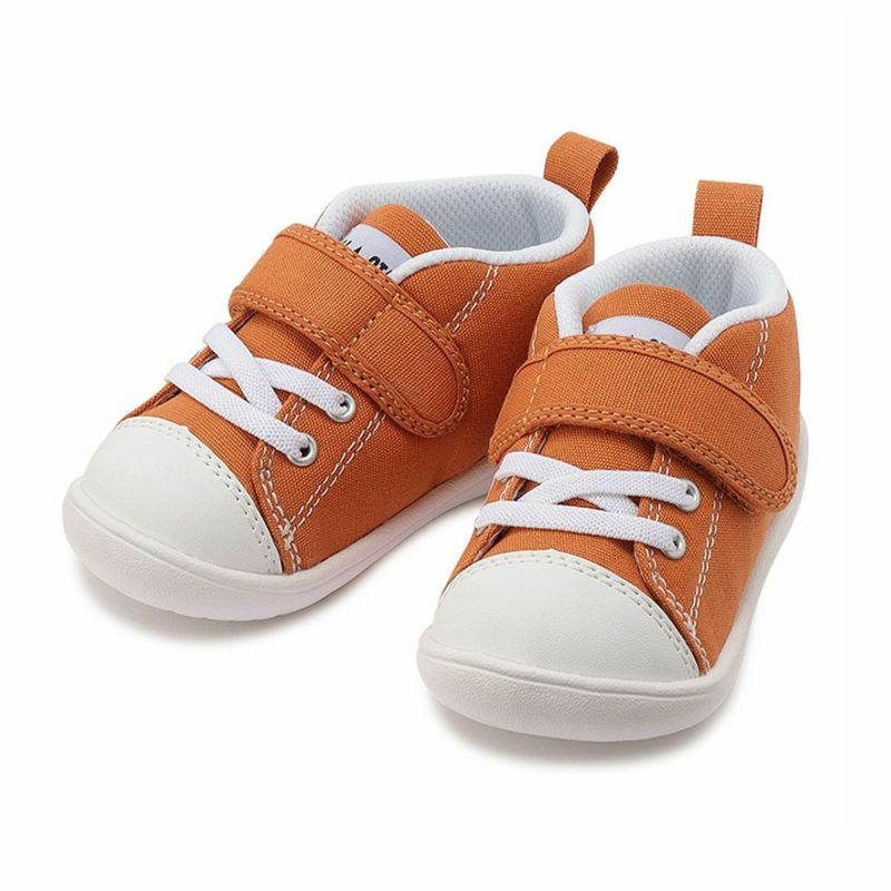 歩き始めのベビーの足に優しい軽量かつ屈曲性の良いソール設計。タンが大きく開き、幅広のかかとテープ付きで脱ぎ履きさせやすい。