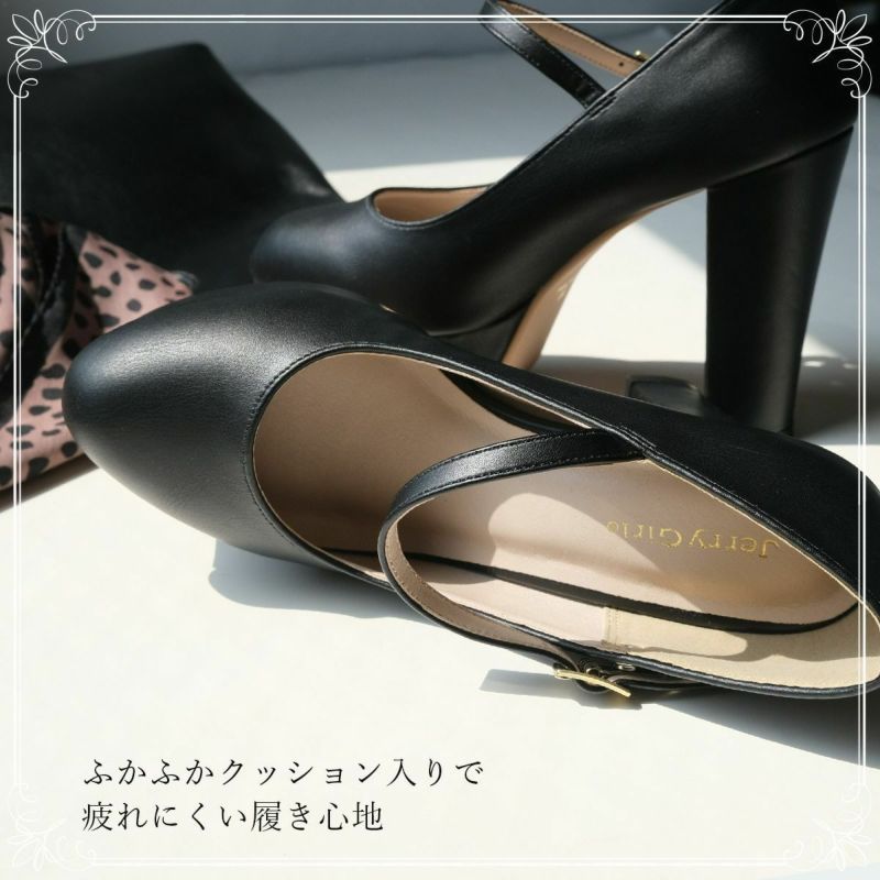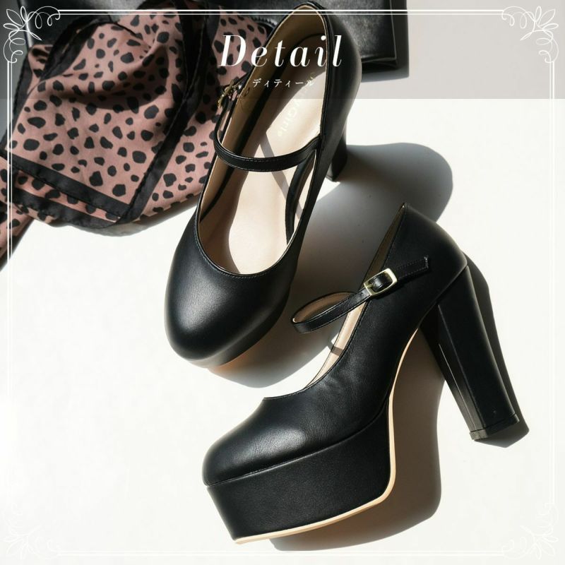 ストラップ付プラットフォーム太ヒールパンプス レディース