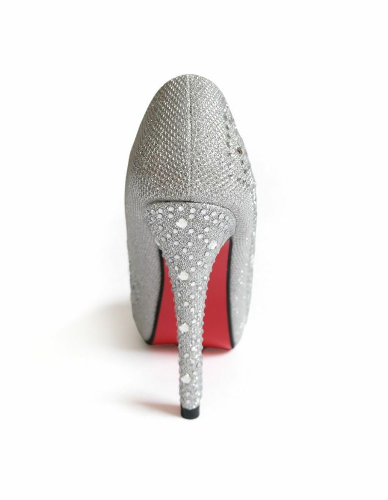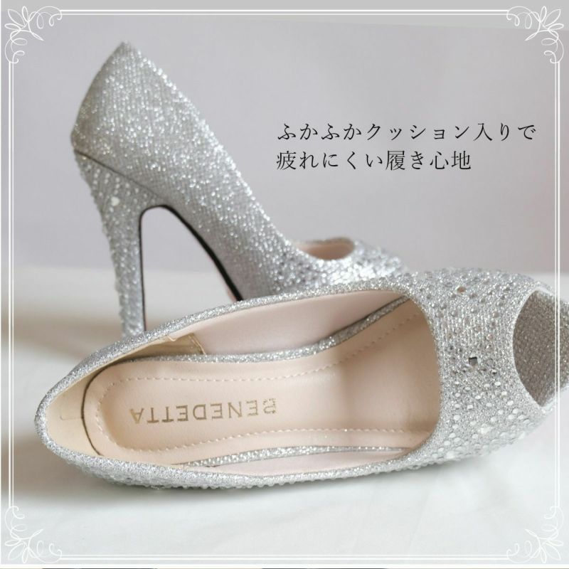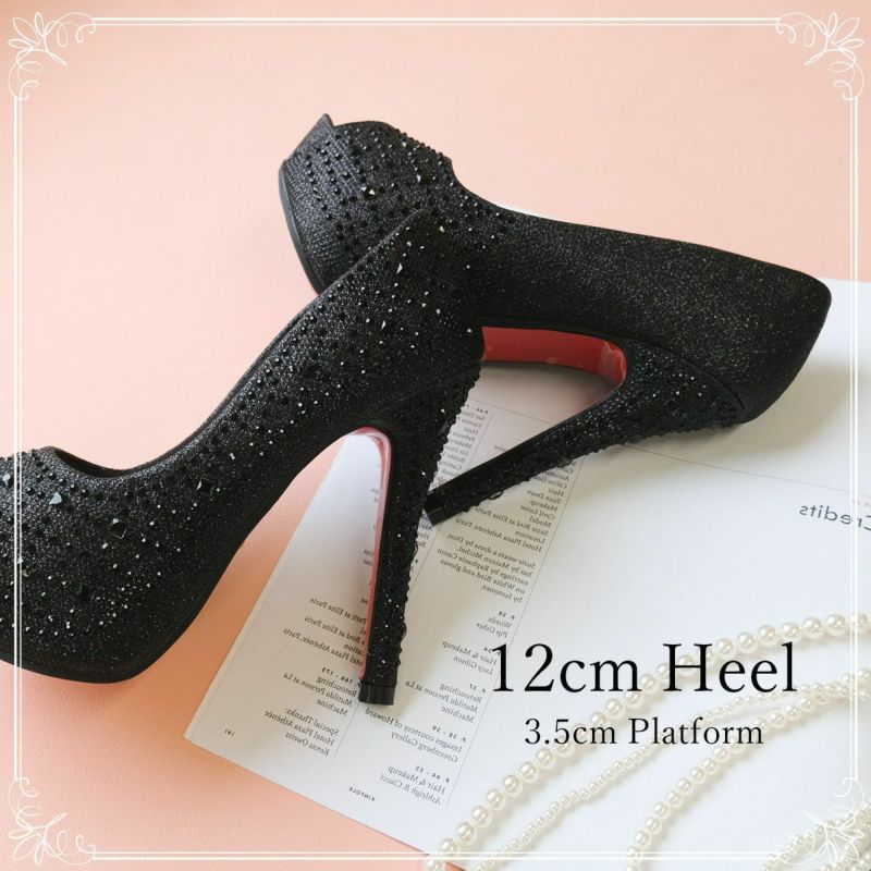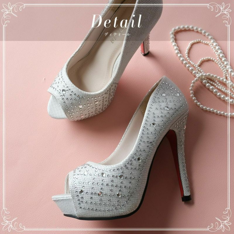 ヒール部分まで豪華に輝くラインストーン付きすらりと伸びた12cmヒールは脚長美脚効果絶大!