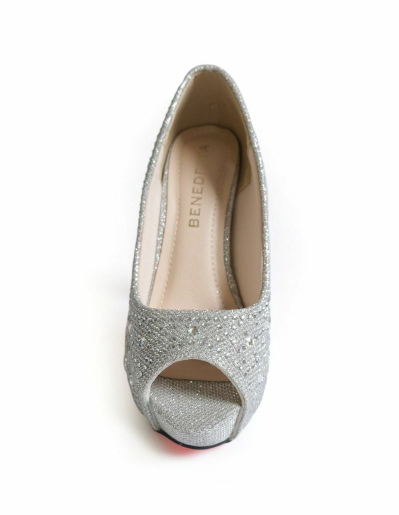豪華ラインストーンが散りばめられたオープントゥパンプス