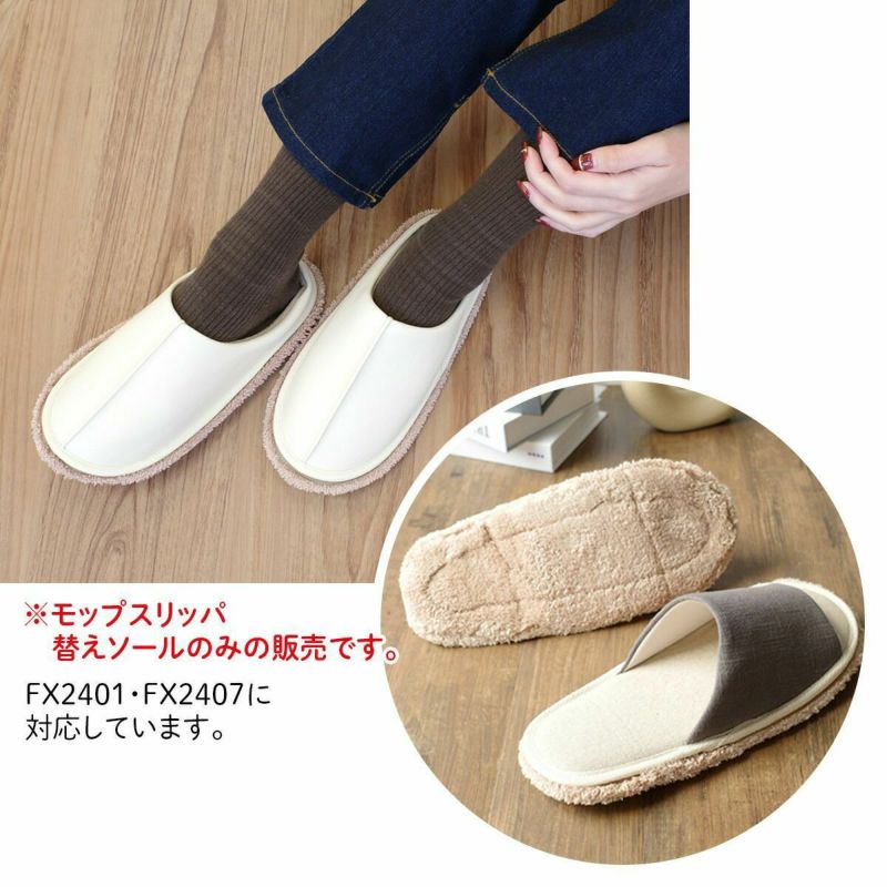 ■商品の特徴: こちらはモップスリッパ替えソールのみの販売です。FX2401・FX2407モップスリッパに対応しています。マジックテープ仕様なので、取り外して手洗いでき、繰り返し使えます。