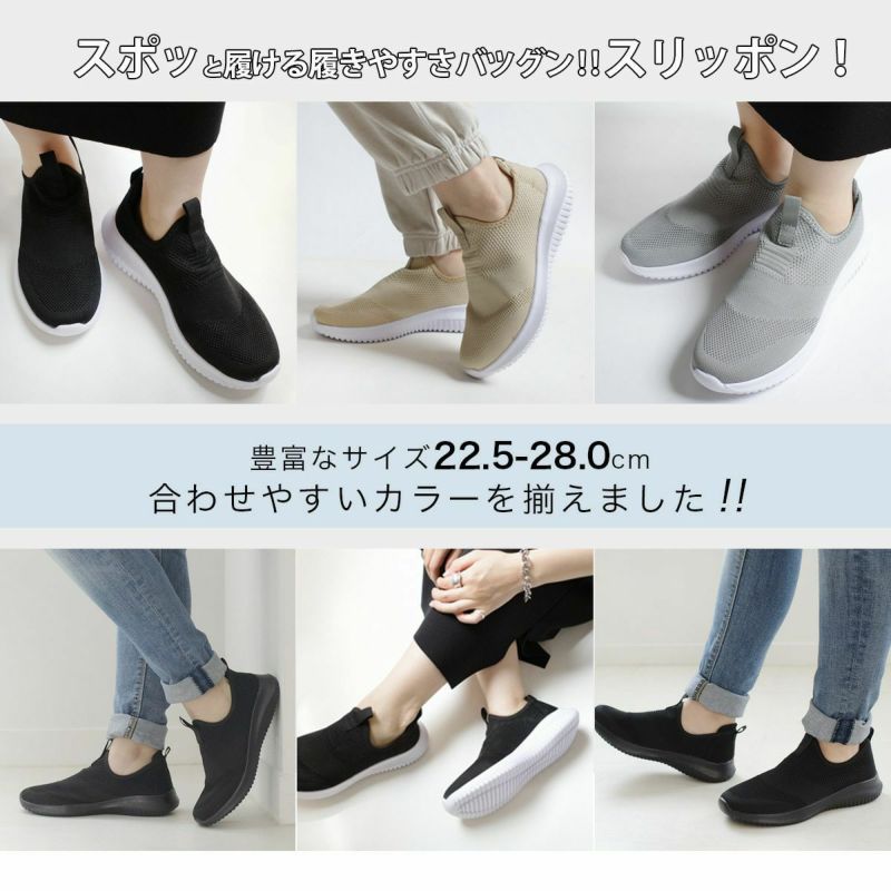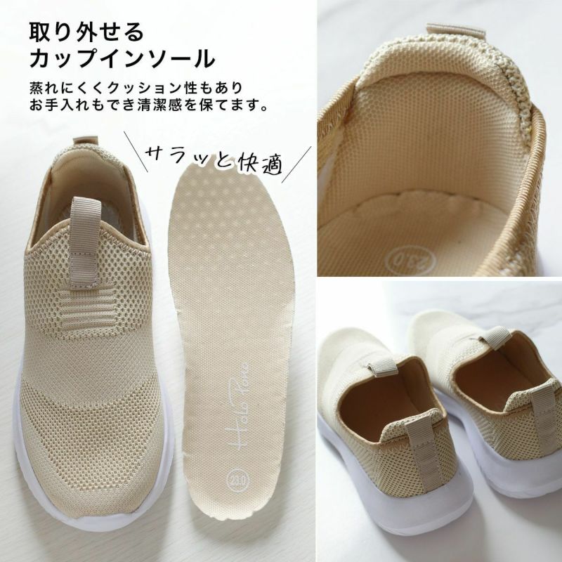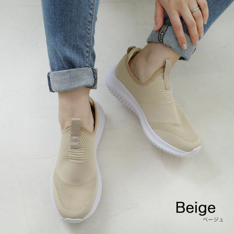 通気性抜群なメッシュ素材で一日中爽やかで快適に履ける!肌当たりが優しいニット素材と多方向に曲がる柔らかなソールが、足の動きをサポート!